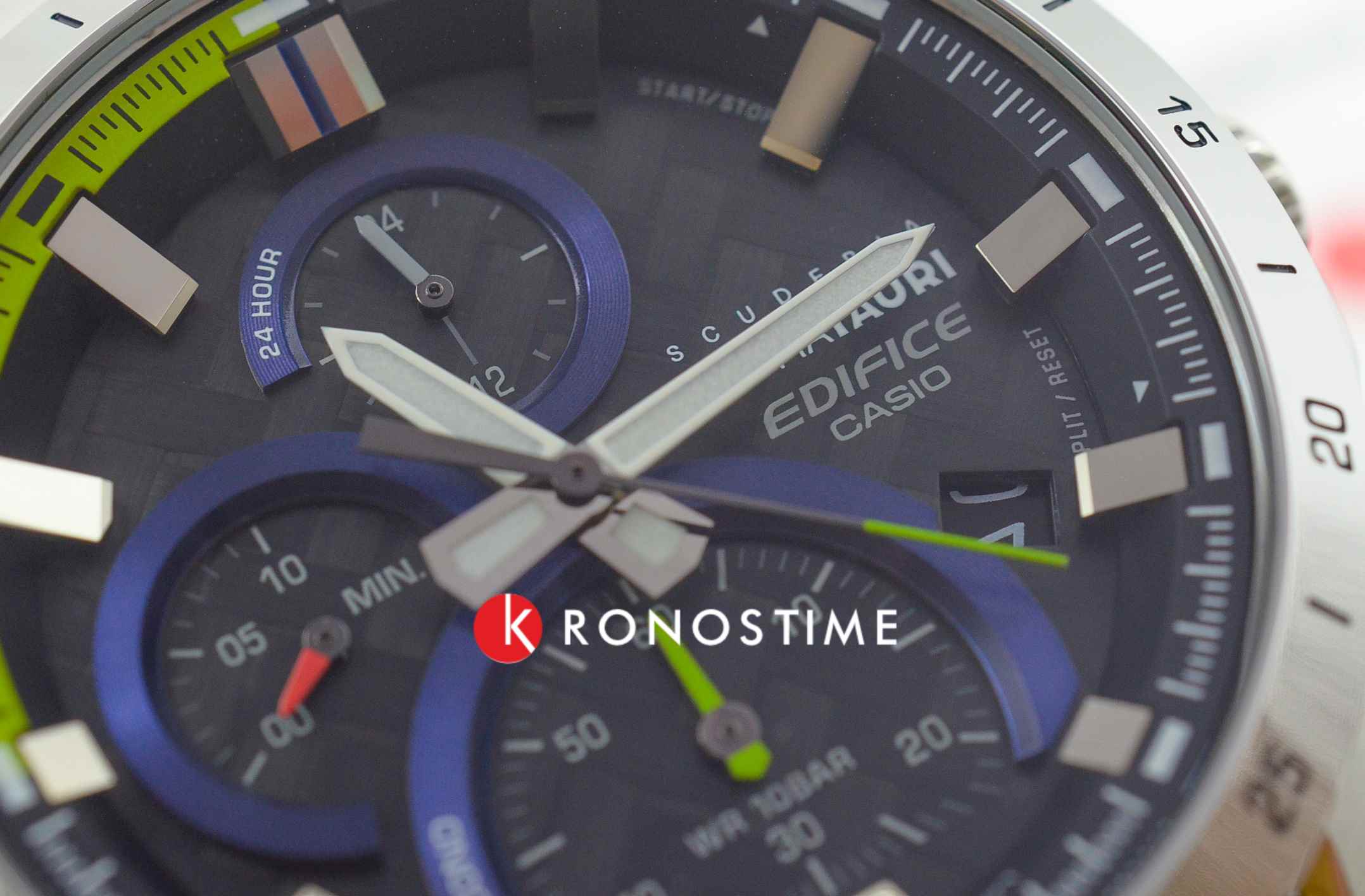 Часы Casio Edifice EFR-571AT-1AER из лимитированной серии, созданной в коллаборации с итальянской гоночной командой Формулы-1 Scuderia AlphaTauri. Внутренний корпус часов изготовлен из того же углеродного волокна 6K, что используется в аэродинамических крыльях гоночной машины Scuderia AlphaTauri. Элементы циферблата и секундная стрелка окрашены в флуоресцентный желтый цвет, который используется на трассах Формулы-1 для безопасности.