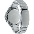 Массивный хронографХронографФункция позволяет измерять отрезки времени с особой точностью: часы, минуты, секунды. Верным признаком хронографа является наличие на циферблате 3 дополнительных окошек-счётчиков. стильно смотрится на запястье, расположение счётчиков на циферблате напоминает нам о приборной панели автомобиля. Модель оснащена технологией . Надёжный корпус из нержавеющей стали 316L дополнен завинчивающейся задней крышкой. Водостойкость 100 метров. Люминесцентная подсветкаЛюминесцентное покрытиеПозволяет считывать показания времени в темноте. Производители наносят на стрелки, часовые индексы, безель или поверхность циферблата светонакопительный состав, дающий холодное свечение.. Секундомер, отображение даты. Габариты: 52 x 46,1 x 11,8 мм.