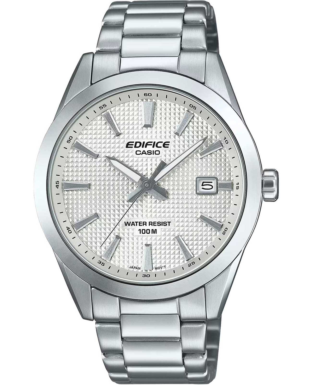 Мужские кварцевые часы Casio Edifice EFV-160D-7A — это стильный аксессуар, сочетающий в себе надёжность и функциональность. Модель выполнена из нержавеющей стали. Защиту механизма обеспечивает минеральное стеклоМинеральное стеклоМинеральное стекло представляет собой искусственно выращенный минерал кварца. Такое стекло отличается особой устойчивостью к повреждениям и царапинам. Уступает по некоторым качествам сапфировому стеклу. с сферической формой, устойчивое к повреждениям. Задняя пластина имеет винтовой замок, что обеспечивает надёжную фиксацию на запястье. Браслет из нержавеющей стали оснащён раскладной застёжкойРаскладная застёжкаТакой тип застёжки используется только на браслетах из металла. Она никогда не раскрывается полностью, происходит разделение на 2 и более частей. Раскладывающая застёжка снизит вероятность потери часов к минимуму., обеспечивающей комфорт и надёжную фиксацию. Окошко даты находится в положении 3 часа. Часы водонепроницаемы до 100 метров, что позволяет использовать их при плавании и других водных активностях без глубокого погружения. Точность хода составляет ±20 секунд в месяц, а срок службы батареи — примерно 3 года. Эти часы станут универсальным аксессуаром для тех, кто ценит сочетание стиля, функциональности и надёжности — идеальный выбор для повседневной носки и активного образа жизни.