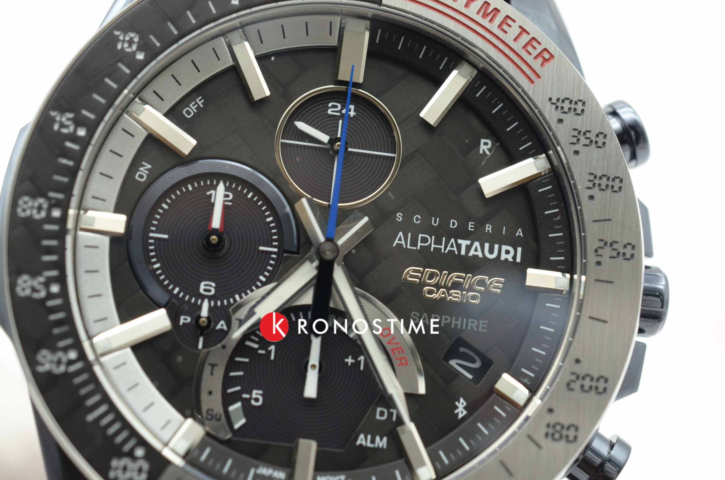Фантастическая модель EQB-1000AT-1AER Edifice совместно с итальянской гоночной командой Формулы-1 Scuderia AlphaTauri из серии EQB-1000 выпустили модель в корпусе из стали на текстильном ремешке. Часы основаны на технологии Touch Solar, оснащены расширенными функциональными возможностями: Bluetooth нового поколения с низким потреблением энергии, автоматический календарь, хронограф , секундомер, индикатор последнего круга дистанции Last Lap Indicator, мировое время. Модель комплектуется надёжным браслетом из нержавеющей стали. Заводная головка с защитой. Ударопрочный корпус, сапфировое стекло с антибликовым покрытием. Водонепроницаемость WR 100. Подсветка Neobrite . Габариты: 49,9 x 45,6 x 8,9 мм.