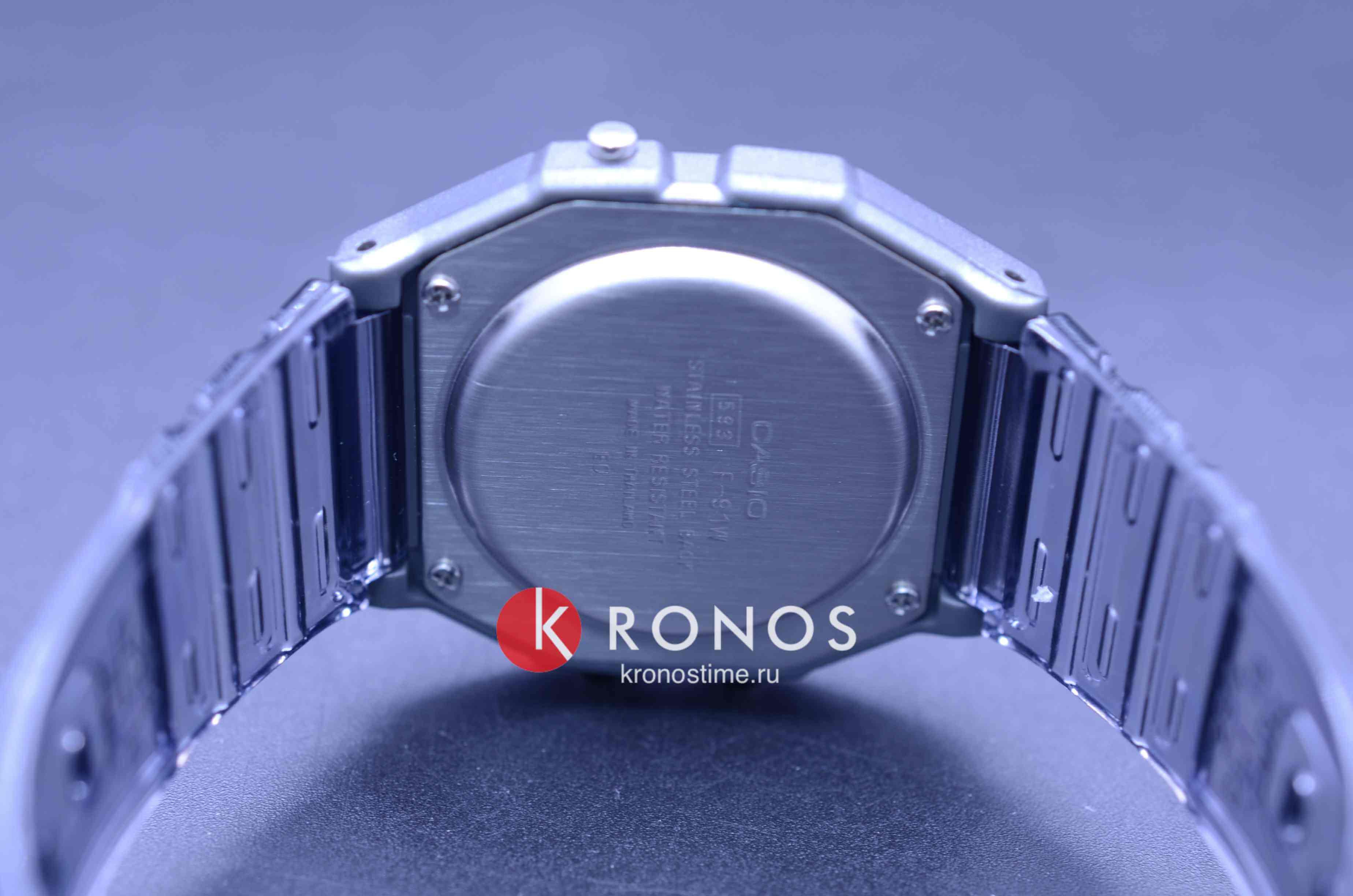 Аксессуар наделён узнаваемым квадратным корпусом, прототипом для которого стали первые модели от Casio. Винтажное исполнение не лишено современности, наручные часы предстают перед нами в полупрозрачном чёрном формате. Корпус выполнен из полимера, он обезопасит японский кварцевый калибр от случайных ударов и повреждений. Идентичный материал был выбран и для ремешка, комфортно сидящего на запястье. Часы оснащены светодиодной микроподсветкойСветодиодная подсветкаСветодиодная или LED-подсветка обеспечивает появление яркого холодного свечения за счёт LED-элементов - маленьких лампочек. Они потребляют минимальное количество энергии, чаще всего можно встретить 1 светодиод, в нижней части циферблата., освещающей циферблат сбоку. 1 батарейка будет обеспечивать питание механизма на протяжении 7 лет. Отображение времени можно выбрать в формате 12-ти или 24-х часов. Функции: будильник, секундомер, автоматический календарь. Габариты: 38,2 x 33,2 x 8,5 мм.