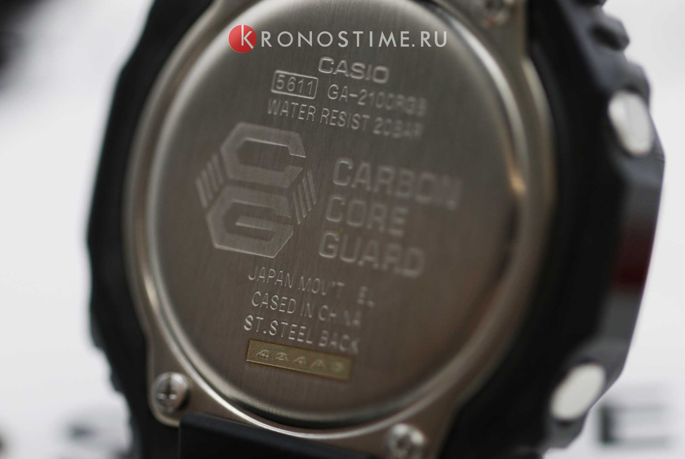 Японские мужские противоударныеУдаропрочный корпусМеханизм заключён в корпус, выполненный из современных материалов, устойчивых к ударам, механическим повреждениям и падению с высоты: инновационный пластик, карбон, нержавеющая сталь, титан. часы G-SHOCK GA-2100RGB-1A с функциональной начинкой прекрасно подойдут для любителей активного образа жизни. Модель вдохновлена киберспортом и виртуальным миром видеоигр. Яркие акценты напоминают цветную подсветку профессиональных геймерских девайсов. Противоударный пластиковый корпус с карбоновыми волокнами более прочный и, в то же время, более легкий. Этот же материал защищает внутренний модуль от повреждений и деформаций при ударах. Циферблат подсвечивается светодиодомСветодиодная подсветкаСветодиодная или LED-подсветка обеспечивает появление яркого холодного свечения за счёт LED-элементов - маленьких лампочек. Они потребляют минимальное количество энергии, чаще всего можно встретить 1 светодиод, в нижней части циферблата.. Функция парный иллюминатор обеспечивает подсветку не только аналогового циферблата, но и цифрового дисплея. Настраиваемое послесвечение 1,5 или 3сек. Цвет подсветки: белый. НеобритовоеПодсветка NeobriteИспользование светонакопительных составов на основе сульфида цинка или алюмината стронция, яркий свет можно наблюдать на протяжении 6-10 часов после «зарядки» часов около источника света. светонакопительное покрытие обеспечивает длительное послесвечение в темноте даже после кратковременного нахождения на свету. 12-ти и 24-х часовой формат времени. СекундомерСекундомерСекундоме́р — прибор, способный измерять интервалы времени с точностью до долей секунды. с двумя точностями показаний: 1/100с (до 1ч) и 1с (после 1ч) и временем измерения 24ч. Сплит-хронографСплит-хронографИспользуется для измерения продолжительности нескольких временных отрезков, начинающихся одновременно, а заканчивающихся в разное время.. ТаймерТаймерОтсчитывает секунды в обратном направлении в заданном интервале времени. обратного отсчета от 1c до 24ч с автоповтором. Мировое время Мировое время Полезное часовое усложнение, отображающее время в основных городах и известных областях по всему миру, оно связано с часовыми поясами, удобно для путешественников и бизнесменов. – 48 городов (31 часовой пояс), всемирное координированное время (UTCUTCВсемирное кординационное время, не имеющее привязки к географическому положению Гринвича, основывается на атомном отсчёте времени. Регулировка времени осуществляется более точно, чем устаревшее GMT.