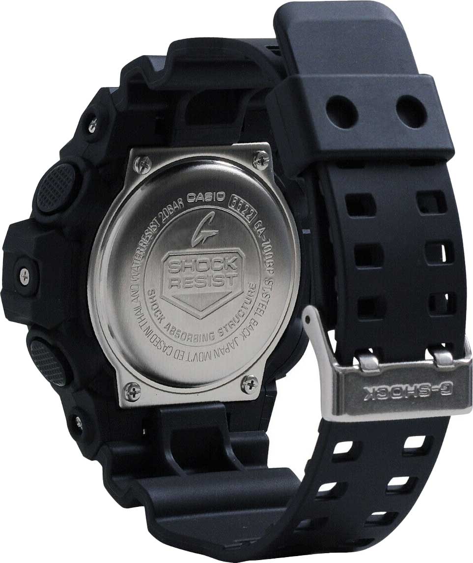 Японские мужские противоударные часы с хронографом Casio G-Shock GA-700BP-1A, электронный механизм с высокой точностью. Класс водозащиты: 200 метров, позволит плавать, нырять и заниматься другими водными видами спорта. Корпус часов изготовлен из пластика, цвета.