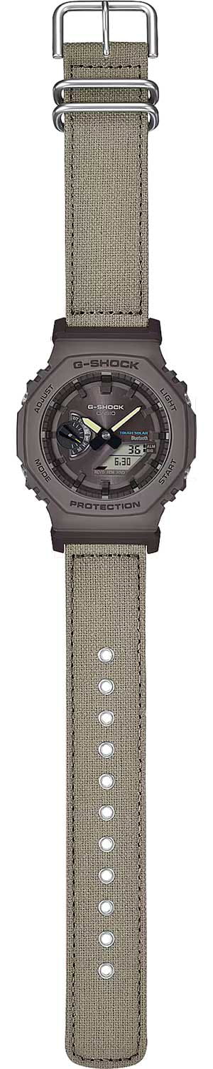 Японские мужские часы-хронографХронографФункция позволяет измерять отрезки времени с особой точностью: часы, минуты, секунды. Верным признаком хронографа является наличие на циферблате 3 дополнительных окошек-счётчиков. Casio G-Shock GA-B2100CT-5ADR (GA-B2100CT-5A). Корпус выполнен из биопластика, который изготавливается из возобновляемых органических ресурсов. Ремешок выполнен из экологически чистого хлопка TrueCotton и окрашен красками FOOD TEXTILE, которые перерабатывают пищевые отходы для создания натуральных красителей. Для данной модели часов краску для ремешка изготовили из кофе. Питание от солнечной энергии Tough Solar - солнечные батарейки большой мощности. Индикатор заряда батареи. Функция автоматического сохранения энергии. Время работы аккумулятора без подзарядки - 7 месяцев, при включенной функции сохранения энергии - 18 месяцев. Структура Carbon Core Guard. Противоударный пластиковый корпус с карбоновыми волокнами более прочный и, в то же время, более легкий. Этот же материал защищает внутренний модуль от повреждений и деформаций при ударах. Двойная подcветка: циферблат и ЖК-дисплеи подсвечиваются светодиодом, благодаря наличию функции задержки, после отпускания кнопки освещение горит еще несколько секунд. Настраиваемое послесвечение 1,5 или 3сек. Цвет подсветки: белый. Необритовое светонакопительное покрытие обеспечивает длительное послесвечение в темноте даже после кратковременного нахождения на свету. Минеральное стеклоМинеральное стеклоМинеральное стекло представляет собой искусственно выращенный минерал кварца. Такое стекло отличается особой устойчивостью к повреждениям и царапинам. Уступает по некоторым качествам сапфировому стеклу. устойчивое к появлению царапин, обладающее высокой прозрачностью.