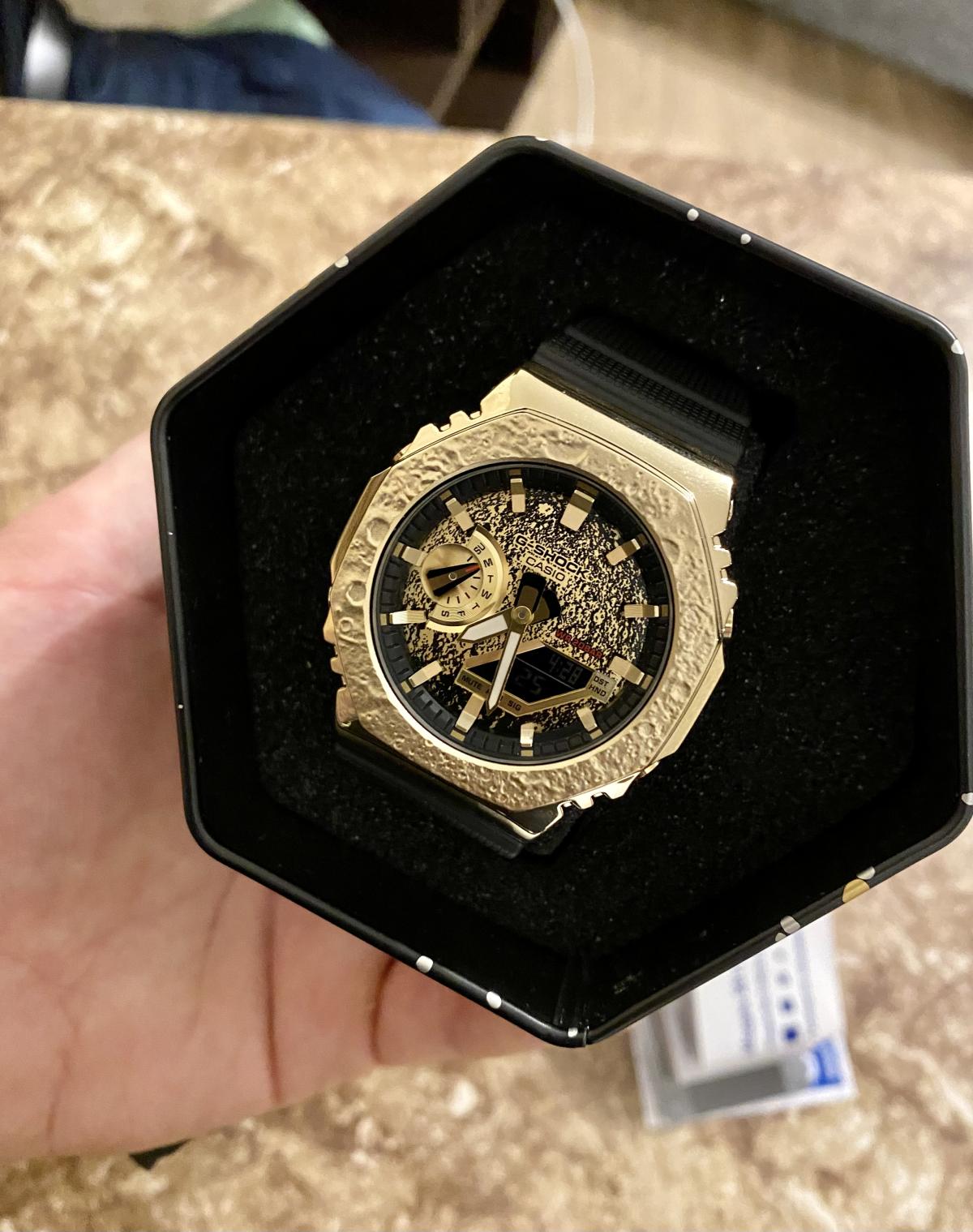 Японские мужские часы Casio G-Shock GM-2100MG-1A Moon Watch Gold с хронографом