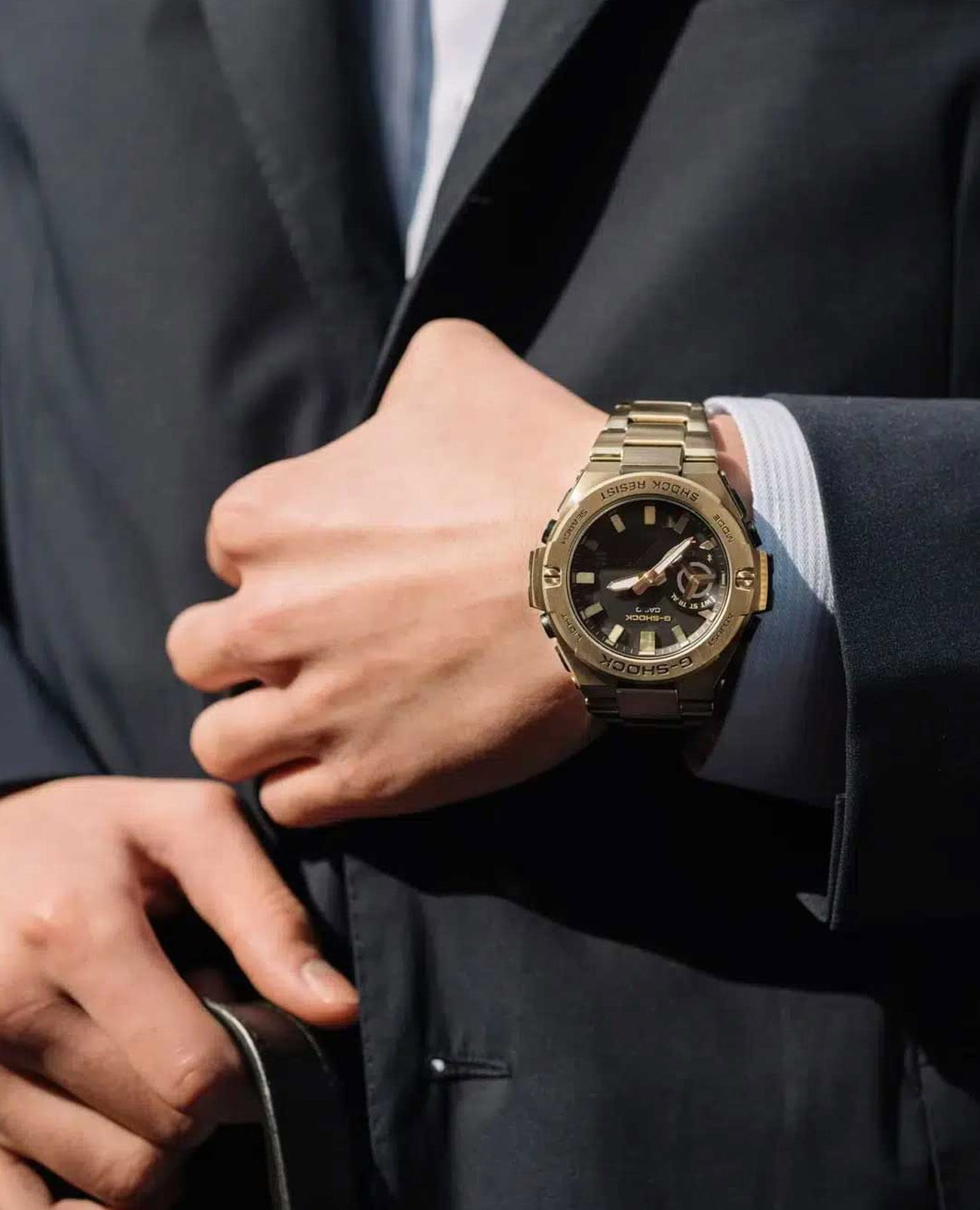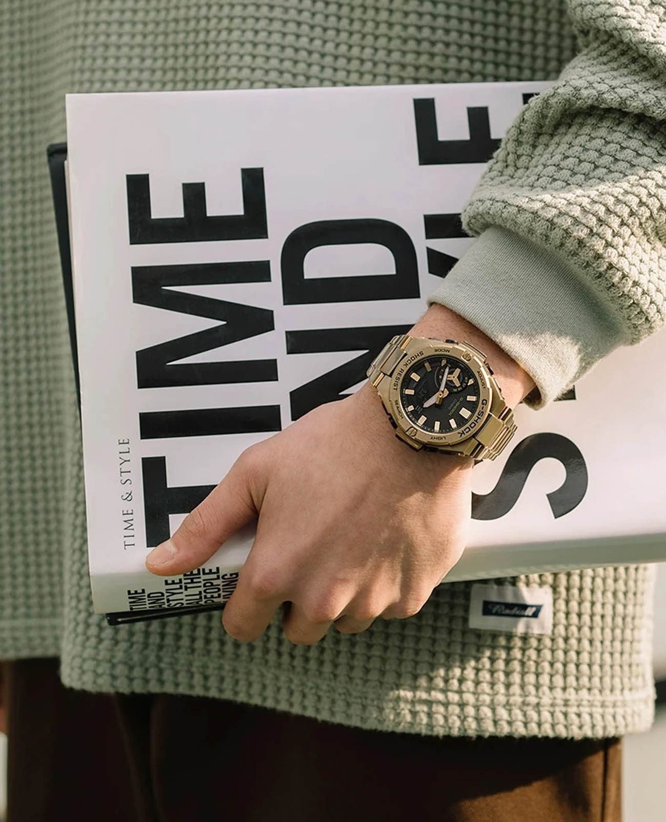 Японские мужские часы-хронографХронографФункция позволяет измерять отрезки времени с особой точностью: часы, минуты, секунды. Верным признаком хронографа является наличие на циферблате 3 дополнительных окошек-счётчиков. с минеральным стекломМинеральное стеклоМинеральное стекло представляет собой искусственно выращенный минерал кварца. Такое стекло отличается особой устойчивостью к повреждениям и царапинам. Уступает по некоторым качествам сапфировому стеклу. Casio G-Shock GST-B500GD-9A, кварцевый механизм с высокой точностью. Линейка GST-B500 объединяет в себе все самое необходимое, что нужно современным мужчинам. Питание от солнечной энергии Tough SolarTough SolarТехнология основана на подзарядке аккумулятора от источника солнечного света, специальная панель улавливает солнечные лучи и преобразует их в энергию для работы часов. Достаточно пары минут нахождения на солнце для функционирования часов в течении суток. солнечные батарейки большой мощности, индикатор заряда батареи. Функция автоматического сохранения энергии. Время работы аккумулятора без подзарядки приблизительно 7 месяцев, при включенной функции сохранения энергии приблизительно 18 месяцев. Механизм часов помещен в корпус из прочного материала, который надежно защищает от внешних воздействий, от ударов и вибрации. Carbon Core GuardCarbon Core Guard Новейшая структура корпуса, разработанная Casio. Полиуретановая пластина дополнительно усилена карбоновыми вставками, что придаёт специальную защиту от механических повреждений. Карбон отличается лёгкостью и прочностью. объединяет корпус и заднюю крышку в единый карбоновый моноблок. Ударопрочный корпусУдаропрочный корпусМеханизм заключён в корпус, выполненный из современных материалов, устойчивых к ударам, механическим повреждениям и падению с высоты: инновационный пластик, карбон, нержавеющая сталь, титан. из стали с IP-покрытиемIP-покрытиеМетод ионного напыления. Демонстрирует повышенную устойчивость к истиранию, окислению и химическим веществам. Под воздействием высокого давления и температуры около 1500°C молекулы металла надёжно соединяются с частицами корпуса часов. и полимерного материала защищает механизм от ударов и вибрации. Двойная светодиодная белая подсветка Super Illuminator с функцией Afterglow, одновременно подсвечивается аналоговый циферблат и цифровой дисплей. Светонакопительное покрытие NeobriteПодсветка NeobriteИспользование светонакопительных составов на основе сульфида цинка или алюмината стронция, яркий свет можно наблюдать на протяжении 6-10 часов после «зарядки» часов около источника света. обеспечивает длительное послесвечение в темноте даже после кратковременного нахождения на свету. Сплит-хронографСплит-хронографИспользуется для измерения продолжительности нескольких временных отрезков, начинающихся одновременно, а заканчивающихся в разное время.. ТаймерТаймерОтсчитывает секунды в обратном направлении в заданном интервале времени. обратного отсчета от 1 секунды до 1 часа. Мировое времяМировое время Полезное часовое усложнение, отображающее время в основных городах и известных областях по всему миру, оно связано с часовыми поясами, удобно для путешественников и бизнесменов. – 38 часовых поясов, всемирное координированное время (UTCUTCВсемирное кординационное время, не имеющее привязки к географическому положен
