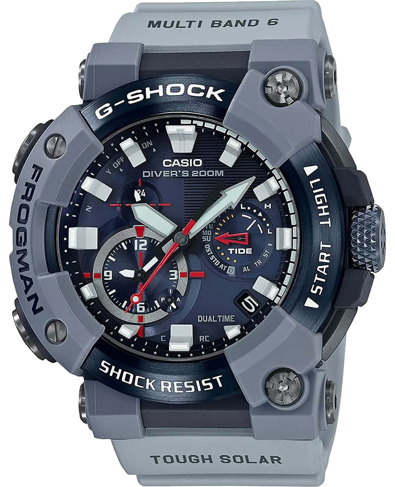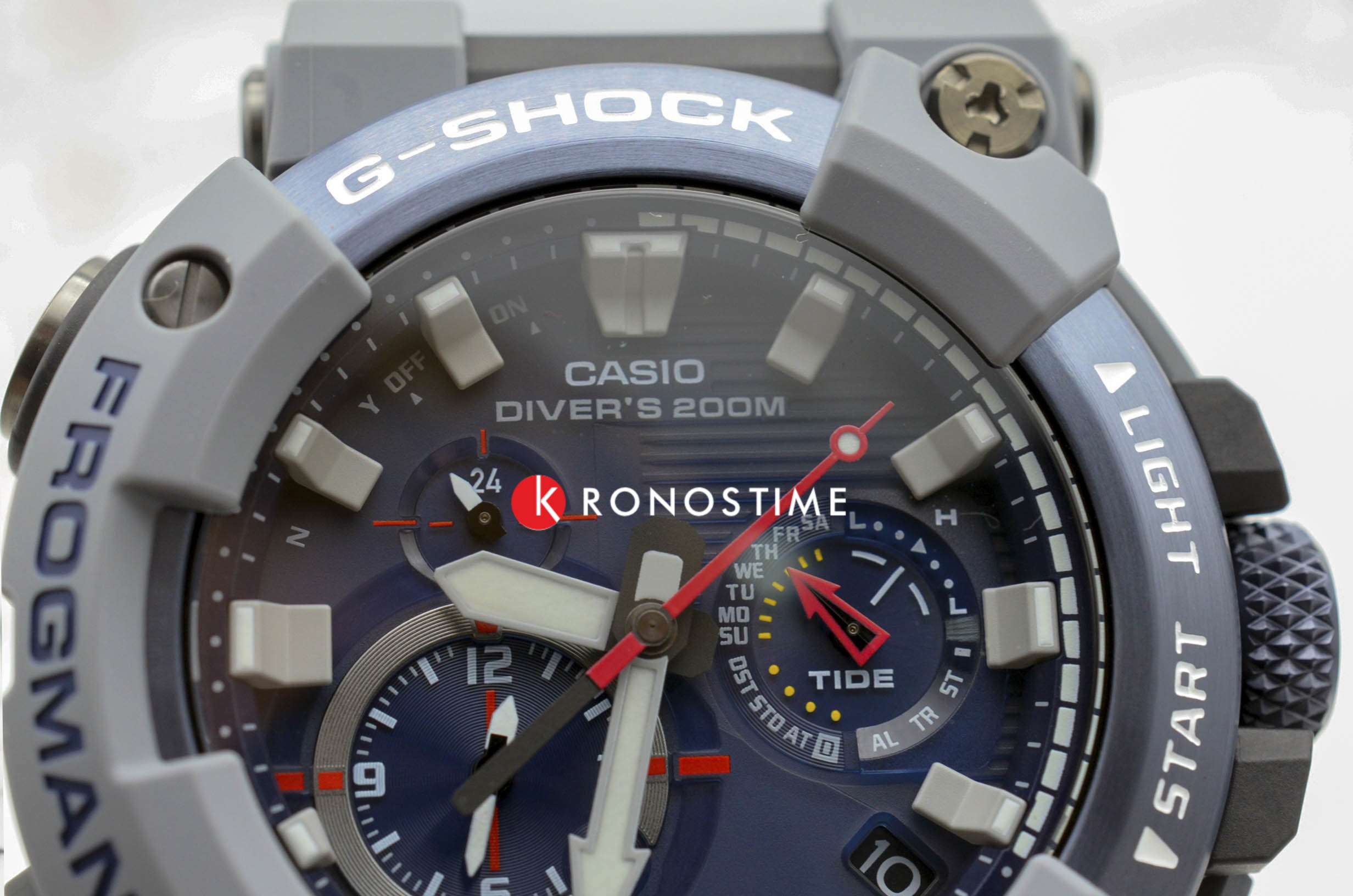 Часы Casio G-Shock GWF-A1000RN-8AER - модель из лимитированной серии Frogman для дайверов со стрелочной индикацией времени и ассиметричным дизайном циферблата, который является отличительной чертой линейки часов Frogman с момента ее запуска в 1993 году.