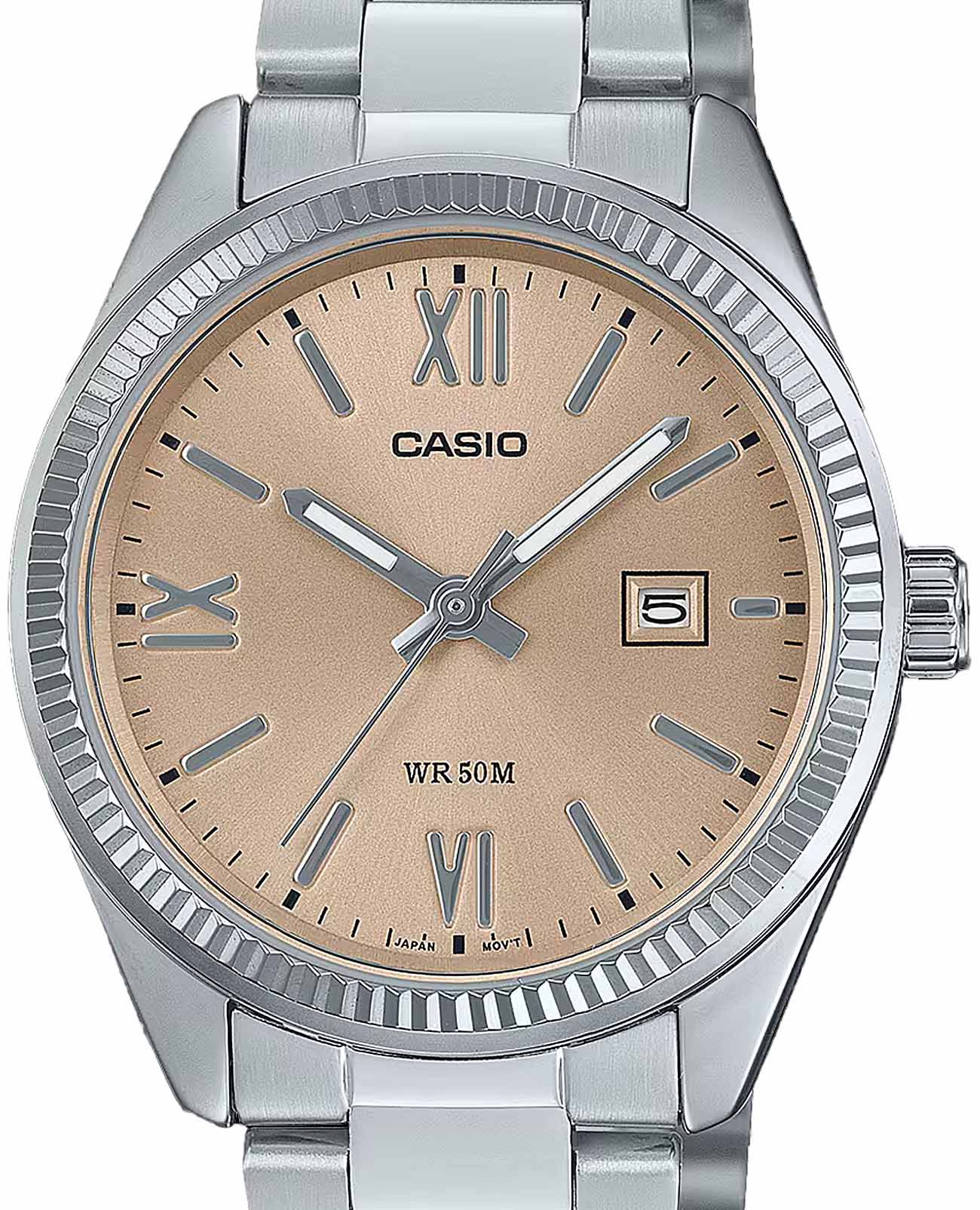 Японские женские часы Casio Collection LTP-1302DD-4A2V с минеральным стекломМинеральное стеклоМинеральное стекло представляет собой искусственно выращенный минерал кварца. Такое стекло отличается особой устойчивостью к повреждениям и царапинам. Уступает по некоторым качествам сапфировому стеклу. изящно смотрятся на запястье, они привлекают классическим исполнением и правильной геометрией. Минималистичная модель станет отличным решением для любого случая: на работу, переговоры с деловыми партнёрами, прогулку с друзьями или праздничный вечер. Отсутствуют лишние детали, что позволяет часам быть актуальными на долгие годы. Корпус выполнен из нержавеющей стали 316L, отличающейся долговечностью и устойчивостью к повреждениям и царапинам. Модель комплектуется надёжным механизмом, точность хода которого составляет +/- 20 сек/мес. Стрелки с люминесцентным покрытиемЛюминесцентное покрытиеПозволяет считывать показания времени в темноте. Производители наносят на стрелки, часовые индексы, безель или поверхность циферблата светонакопительный состав, дающий холодное свечение..