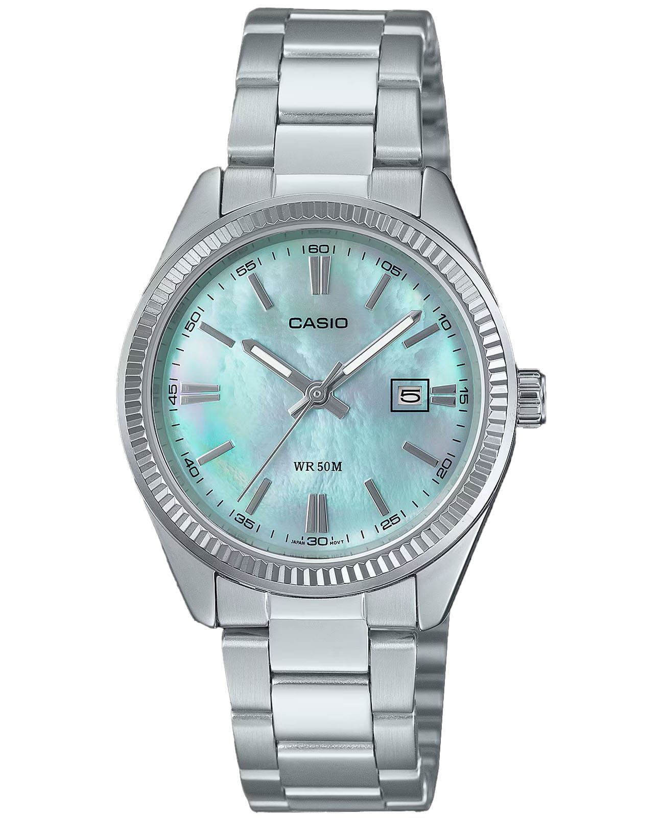 Японские женские часы Casio Collection LTP-1302DS-2AV с минеральным стекломМинеральное стеклоМинеральное стекло представляет собой искусственно выращенный минерал кварца. Такое стекло отличается особой устойчивостью к повреждениям и царапинам. Уступает по некоторым качествам сапфировому стеклу. изящно смотрятся на запястье, они привлекают классическим исполнением и правильной геометрией. Минималистичная модель станет отличным решением для любого случая: на работу, переговоры с деловыми партнёрами, прогулку с друзьями или праздничный вечер. Отсутствуют лишние детали, что позволяет часам быть актуальными на долгие годы. Корпус выполнен из нержавеющей стали 316L, отличающейся долговечностью и устойчивостью к повреждениям и царапинам. Модель комплектуется надёжным механизмом, точность хода которого составляет +/- 20 сек/мес. Стрелки с люминесцентным покрытиемЛюминесцентное покрытиеПозволяет считывать показания времени в темноте. Производители наносят на стрелки, часовые индексы, безель или поверхность циферблата светонакопительный состав, дающий холодное свечение..