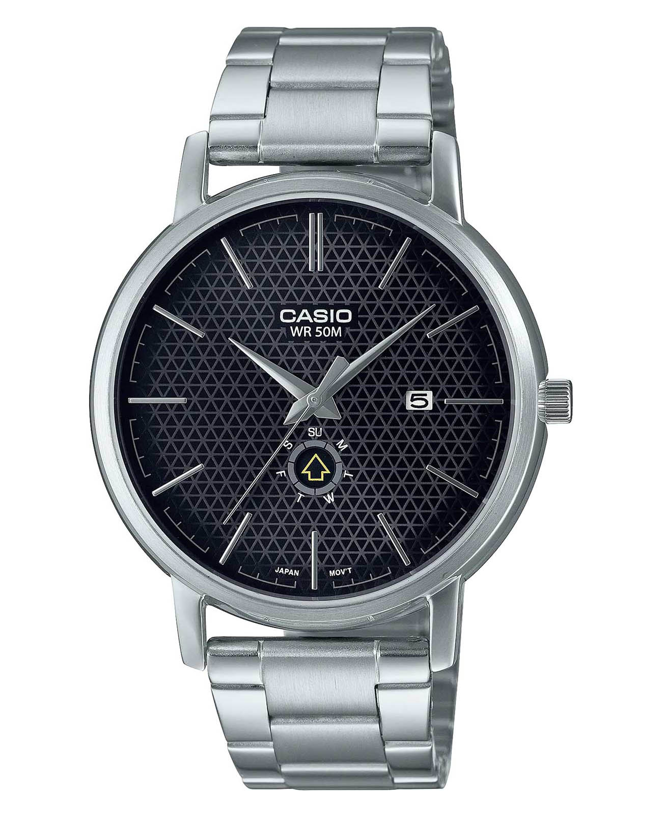 Японские мужские наручные часы Casio Collection MTP-B125D-1A, кварцевый механизм с высокой точностью. Отображение числа и дня недели. Класс водозащиты: 50 метров, позволит защитить корпус от случайных брызг или капель дождя. Корпус часов изготовлен из стали, серебристого цвета. Раскладная застёжкаРаскладная застёжкаТакой тип застёжки используется только на браслетах из металла. Она никогда не раскрывается полностью, происходит разделение на 2 и более частей. Раскладывающая застёжка снизит вероятность потери часов к минимуму..