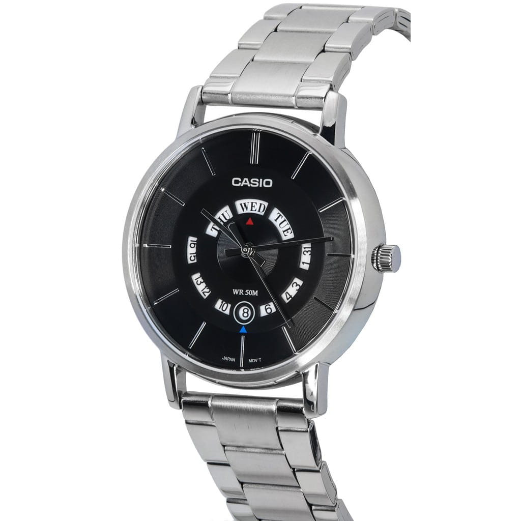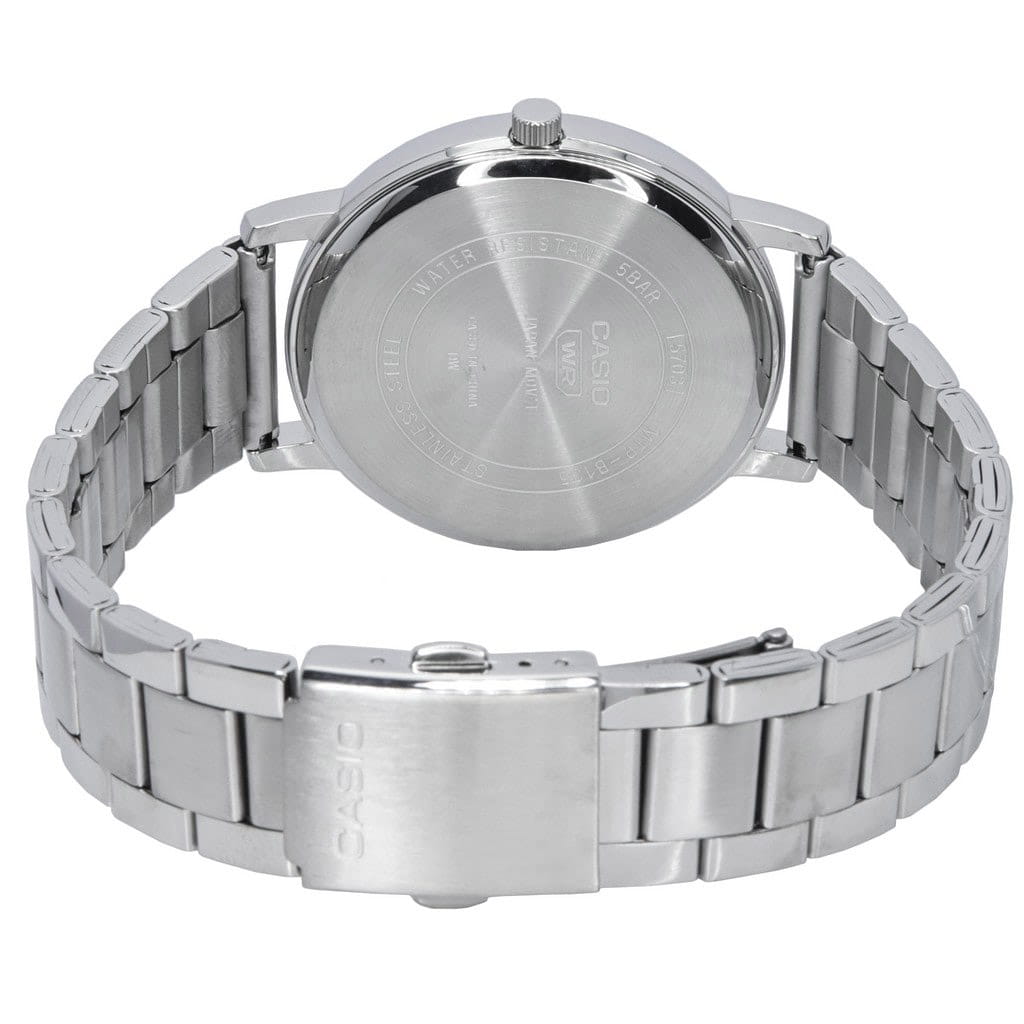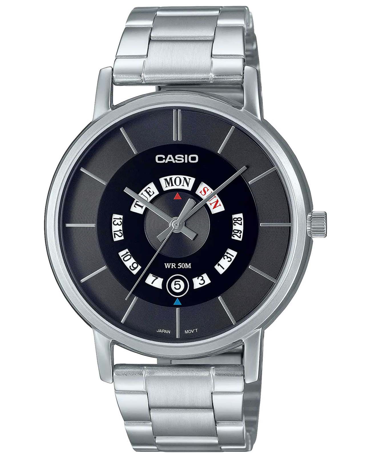 Японские мужские часы MTP-B135D-1A с минеральным стекломМинеральное стеклоМинеральное стекло представляет собой искусственно выращенный минерал кварца. Такое стекло отличается особой устойчивостью к повреждениям и царапинам. Уступает по некоторым качествам сапфировому стеклу. изящно смотрятся на запястье, они привлекают классическим исполнением и правильной геометрией. Минималистичная модель станет отличным решением для любого случая: на работу, переговоры с деловыми партнёрами, прогулку с друзьями или праздничный вечер. Отсутствуют лишние детали, что позволяет часам быть актуальными на долгие годы. Корпус и браслет выполнены из нержавеющей стали. Модель комплектуется надёжным механизмом, точность хода которого составляет +/- 20 сек/мес. Раскладная застёжкаРаскладная застёжкаТакой тип застёжки используется только на браслетах из металла. Она никогда не раскрывается полностью, происходит разделение на 2 и более частей. Раскладывающая застёжка снизит вероятность потери часов к минимуму.