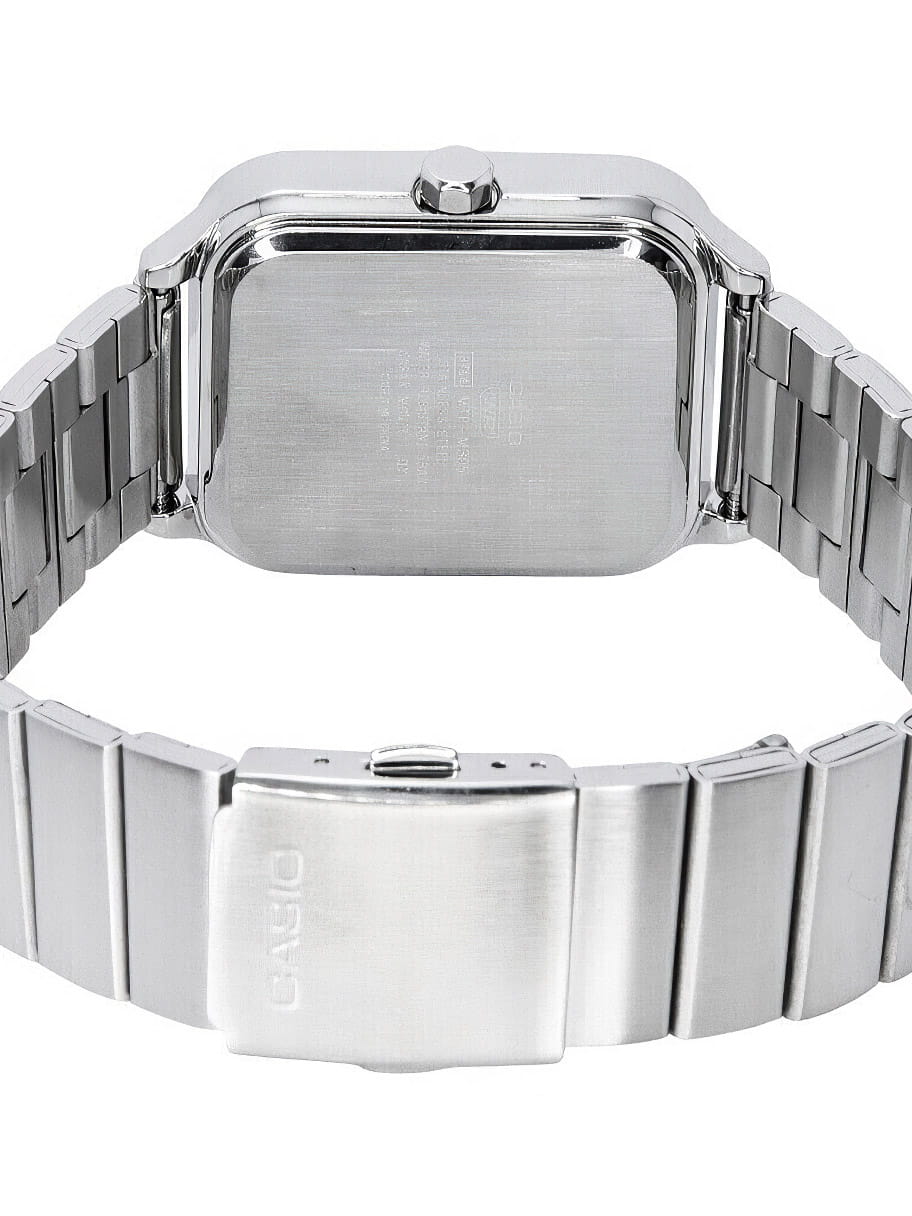 Японские мужские кварцевые часы с минеральным стекломМинеральное стеклоМинеральное стекло представляет собой искусственно выращенный минерал кварца. Такое стекло отличается особой устойчивостью к повреждениям и царапинам. Уступает по некоторым качествам сапфировому стеклу. Casio Collection MTP-M305D-2A, кварцевый механизм с высокой точностью. Корпус часов изготовлен из нержавеющей стали. Циферблат с метками в виде штрихов. Особенностью модели является наличие индикатора фазы луны над шестью часами по циферблату. Индикатор имеет 4 положения и отображается новолуние и полнолуние, а также растущую и убывающую Луну. Батарейка рассчитана на 3 года. Класс водозащиты: 50 метров, позволит защитить корпус от случайных брызг или капель дождя. Стальной браслет на раскладной застёжкеРаскладная застёжкаТакой тип застёжки используется только на браслетах из металла. Она никогда не раскрывается полностью, происходит разделение на 2 и более частей. Раскладывающая застёжка снизит вероятность потери часов к минимуму..