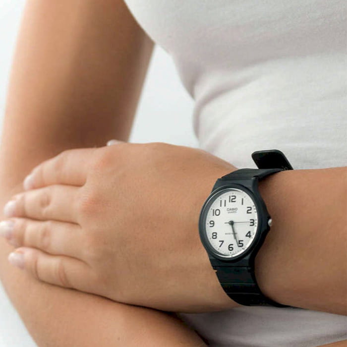 Японские мужские часы с органическим стеклом Casio Collection MW-59-7B, кварцевый механизм с высокой точностью. Класс водозащиты: 50 метров, позволит защитить корпус от случайных брызг или капель дождя. Корпус часов изготовлен из пластика. Пластиковый ремешок на стандартной застёжке. Окошко даты находится в положении 3 часа. Метки в виде арабских цифр.