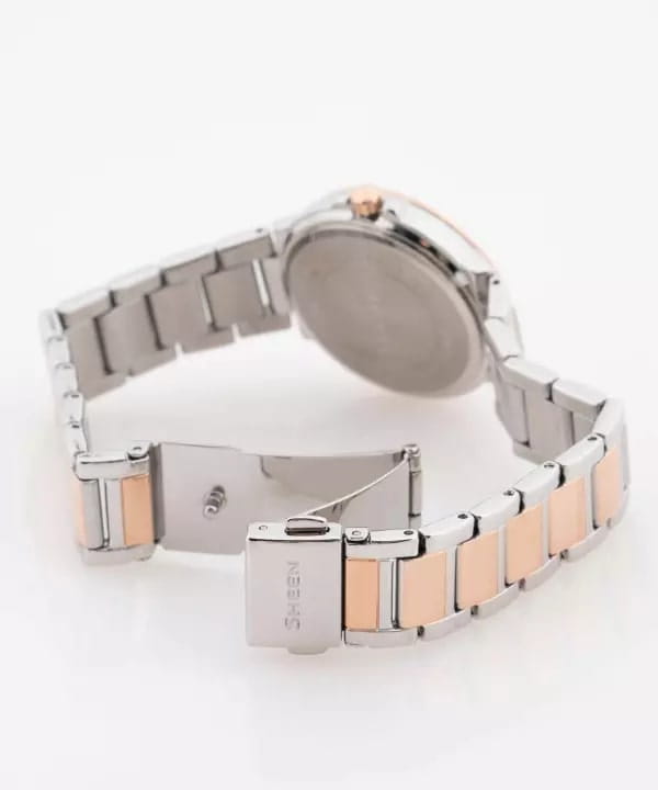 Женские японские наручные часы Casio Sheen SHE-3069SPG-7AUDF, кварцевый механизм с высокой точностью. Сапфировое стекло устойчивое к появлению царапин, обладающее высокой прозрачностью. Класс водозащиты: 50 метров, позволит защитить корпус от случайных брызг или капель дождя. БезельБезельВнешний ободок, закрепляющий стекло. В спортивных часах так называется поворотное кольцо с делениями на циферблате, выполняет роль таймера – замеряет отрезки времени на шкале. Неподвижный безель – элемент декора. Однонаправленно вращающийся безель на дайверских часах позволяет фиксировать моменты погружения и выныривания на поверхность. с IP-покрытиемIP-покрытиеМетод ионного напыления. Демонстрирует повышенную устойчивость к истиранию, окислению и химическим веществам. Под воздействием высокого давления и температуры около 1500°C молекулы металла надёжно соединяются с частицами корпуса часов. украшен кристаллами. 24-часовой формат времени, дата и день недели отображены на отдельных циферблатах.