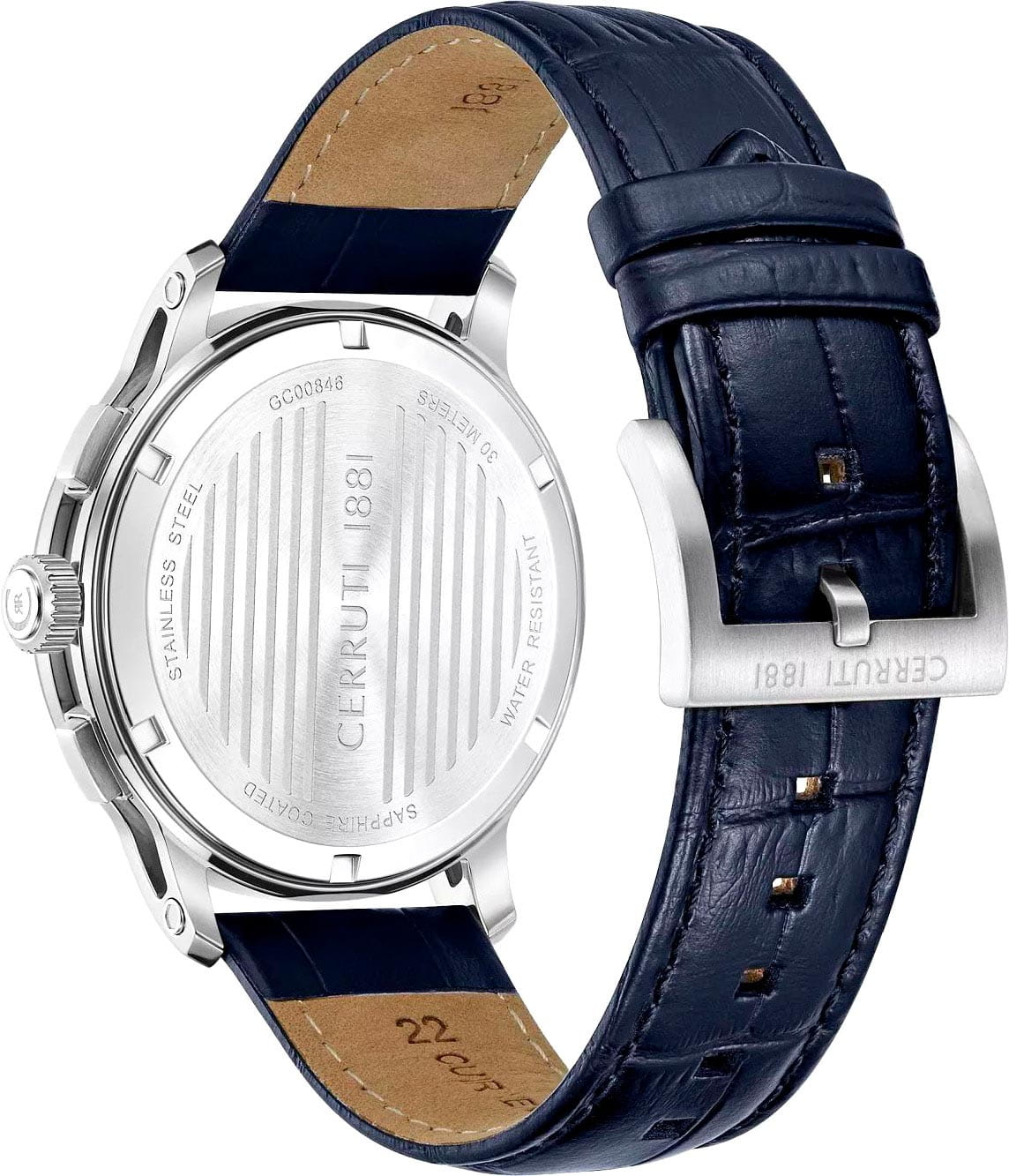 Cerruti 1881 CIWGC0084603 — выразительные мужские часы, выполненные в гармоничном сочетании стали, синего ремня и насыщенного синего циферблата. Модель оснащена функциональным хронографомХронографФункция позволяет измерять отрезки времени с особой точностью: часы, минуты, секунды. Верным признаком хронографа является наличие на циферблате 3 дополнительных окошек-счётчиков. с тремя счётчиками и крупным окном даты на «12 часах», что подчёркивает её практичность и динамичный характер. Корпус из нержавеющей стали защищён прочным минеральным стекломМинеральное стеклоМинеральное стекло представляет собой искусственно выращенный минерал кварца. Такое стекло отличается особой устойчивостью к повреждениям и царапинам. Уступает по некоторым качествам сапфировому стеклу., устойчивым к мелким повреждениям. Циферблат дополнен тахиметрической шкалой по безелюБезельВнешний ободок, закрепляющий стекло. В спортивных часах так называется поворотное кольцо с делениями на циферблате, выполняет роль таймера – замеряет отрезки времени на шкале. Неподвижный безель – элемент декора. Однонаправленно вращающийся безель на дайверских часах позволяет фиксировать моменты погружения и выныривания на поверхность. с PVD-покрытиемPVDУльтратонкое покрытие наносится в технике вакуумного напыления, сочетает в себе нитрид титана особой прочности со слоем золота или оксида хрома. Несёт в себе декоративную или защитную функцию., позволяющей измерять скорость движения. Элегантный ремень из натуральной кожи с аккуратной прострочкой застёгивается надёжной стандартной застежкой, обеспечивая комфорт и долговечность. Модель объединяет классическую утончённость и спортивный дух, оставаясь универсальным аксессуаром для современного мужчины.
