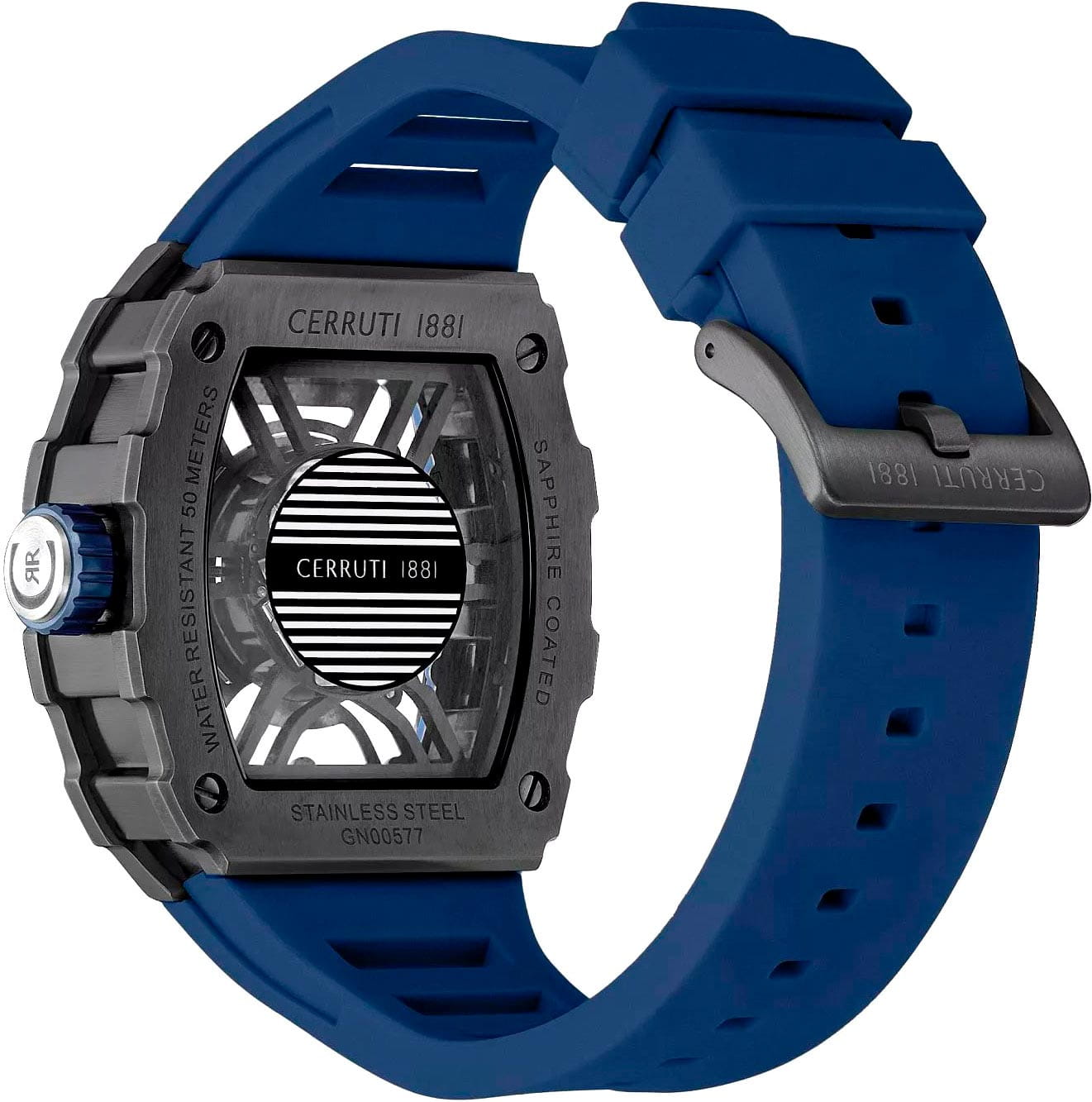 Cerruti 1881 CIWGN0057702 — эффектные мужские часы с дерзким современным дизайном, в которых сочетаются геометрическая точность линий и выразительная динамика формы. Корпус из нержавеющей стали с матовым PVD-покрытиемPVDУльтратонкое покрытие наносится в технике вакуумного напыления, сочетает в себе нитрид титана особой прочности со слоем золота или оксида хрома. Несёт в себе декоративную или защитную функцию. и мощным шестигранным безелемБезельВнешний ободок, закрепляющий стекло. В спортивных часах так называется поворотное кольцо с делениями на циферблате, выполняет роль таймера – замеряет отрезки времени на шкале. Неподвижный безель – элемент декора. Однонаправленно вращающийся безель на дайверских часах позволяет фиксировать моменты погружения и выныривания на поверхность. подчёркивает технический характер модели. Полупрозрачный скелетонизированный циферблат открывает детали механизма, придавая часам индустриальный и технологичный облик. Контрастные стрелки и метки с люминесцентным покрытиемЛюминесцентное покрытиеПозволяет считывать показания времени в темноте. Производители наносят на стрелки, часовые индексы, безель или поверхность циферблата светонакопительный состав, дающий холодное свечение. обеспечивают отличную читаемость, а прочное минеральное стеклоМинеральное стеклоМинеральное стекло представляет собой искусственно выращенный минерал кварца. Такое стекло отличается особой устойчивостью к повреждениям и царапинам. Уступает по некоторым качествам сапфировому стеклу. защищает композицию от внешних воздействий. Эластичный силиконовый ремешок насыщенного синего цвета гармонично сочетается с оттенками корпуса и обеспечивает комфорт при ежедневном ношении. Cerruti 1881 — это смелое воплощение итальянского стиля в спортивно-индустриальной эстетике, созданное для мужчин, уверенно идущих в ногу с временем.