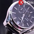 На чёрном узорчатом циферблате симметрично расположились функциональные окошки, на позиции 12 часов размещено 3 роскошных бриллианта оттенка Top Wesselton. ХронографХронографФункция позволяет измерять отрезки времени с особой точностью: часы, минуты, секунды. Верным признаком хронографа является наличие на циферблате 3 дополнительных окошек-счётчиков. отличается повышенной точностью хода благодаря оснащению швейцарским кварцевым калибром ETA G10.211. Классический ремешок из натуральной кожи уместно смотрится в любой ситуации. Антибликовая обработка стекла из сапфира. Водостойкость до 10 бар. Ударопрочный корпусУдаропрочный корпусМеханизм заключён в корпус, выполненный из современных материалов, устойчивых к ударам, механическим повреждениям и падению с высоты: инновационный пластик, карбон, нержавеющая сталь, титан. из стали 316L с антикоррозионными свойствами. Люминесцентная подсветкаЛюминесцентное покрытиеПозволяет считывать показания времени в темноте. Производители наносят на стрелки, часовые индексы, безель или поверхность циферблата светонакопительный состав, дающий холодное свечение.. Безопасная . Секундомер, отображение числа. Диаметр корпуса: 39 мм.