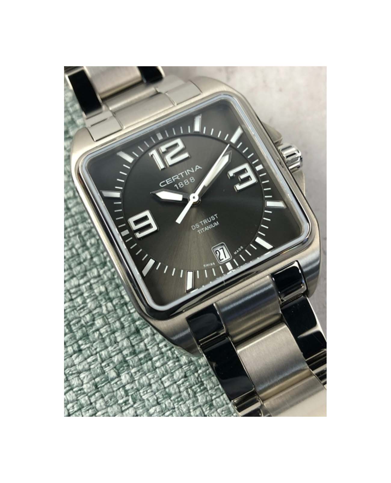 Мужские швейцарские часы Certina DS Trust C0195104408700, кварцевый механизм с высокой точностью. Сапфировое стеклоСапфировое стеклоПрочный и надёжный материал из кристалла сапфира синтетического происхождения, характеризующийся особой твёрдостью и устойчивостью к царапинам и повреждениям. устойчивое к появлению царапин, обладающее высокой прозрачностью. Корпус изготовлен из нержавеющей стали. Стрелки с люминесцентным покрытиемЛюминесцентное покрытиеПозволяет считывать показания времени в темноте. Производители наносят на стрелки, часовые индексы, безель или поверхность циферблата светонакопительный состав, дающий холодное свечение.. Окошко даты находится в положении 6 часов. Класс водозащиты: 100 метров, позволит плавать, нырять и заниматься другими водными видами спорта. Стальной браслет на застёжке-бабочке с кнопкамиЗастёжка "бабочка"Такой вид застёжки дополняется предохранителями, помогающими избежать случайного раскрытия браслета. Обладают изящным исполнением. .