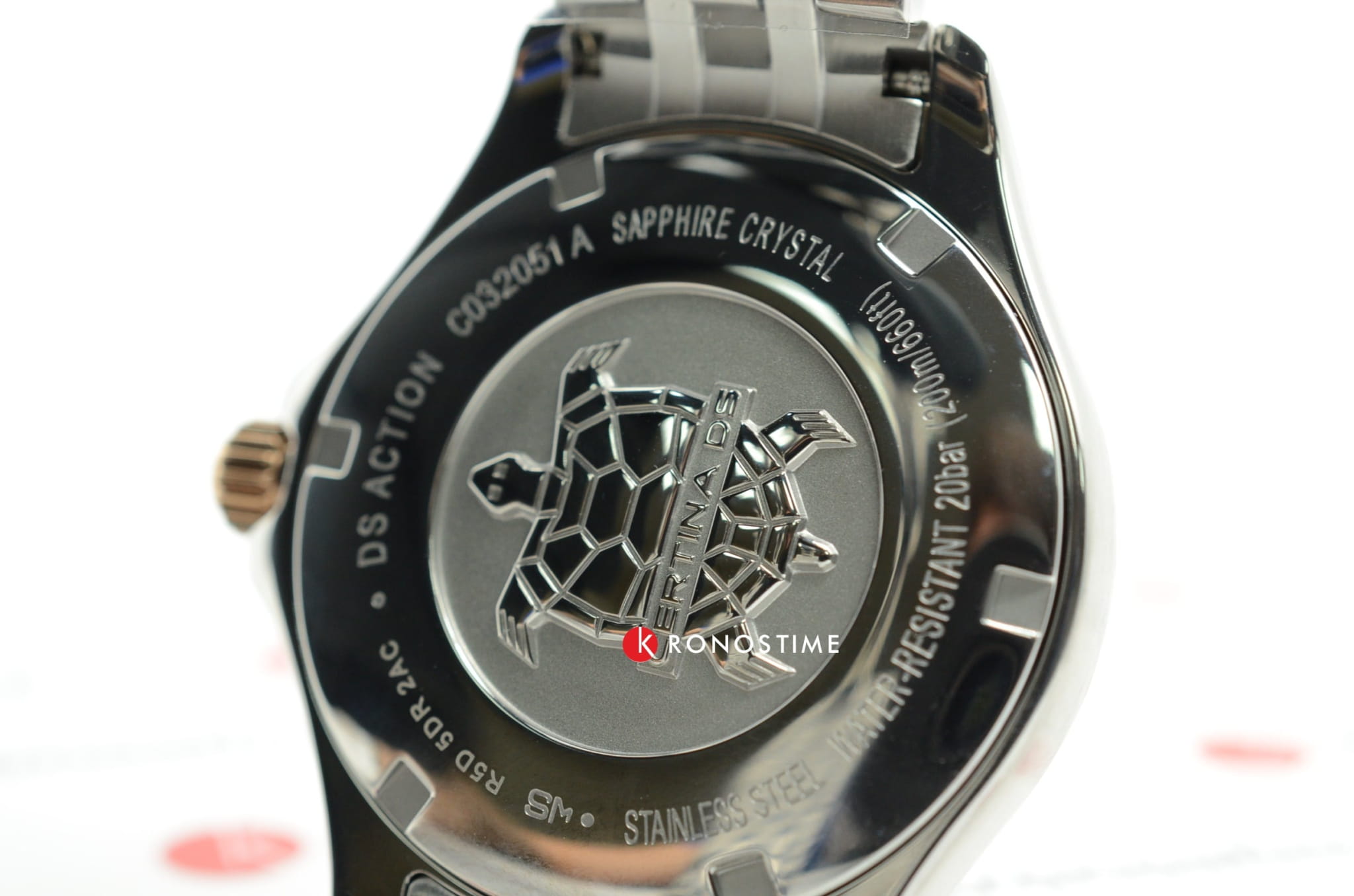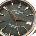 Аксессуар обладает изящным силуэтом, отражающим классический стиль и элегантность. Циферблат украшен 3 роскошными бриллиантами оттенка Top Wesselton. Часы комплектуются высокоточным кварцевым калибром F06.411 от швейцарской компании ETA, высокая точность механизма подтверждается сертификатом хронометра COSCСертификат COSCОфициальный сертификат, подтверждающий то, что часы ходят с особо высокой точностью. Для получения документа часы подвергаются тестовым испытаниям, разработанным швейцарским институтом тестирования хронометров COSC. Допустимая норма для механических часов -4/+6 секунд в день, для кварцевых моделей +/- 0,07 секунд в день.. Концепция DS ConceptDS ConceptDouble Security Concept, обозначает двойную надёжность и безупречную точность часов Certina. Двойная система защиты подразумевает обеспечение максимальной устойчивости к ударам и высоких показателей водонепроницаемости. гарантирует повышенную ударопрочность часов и сохранение водонепроницаемости до 20 бар. Одностороннее антибликовое покрытие сапфирового стекла.Корпус и браслет из хирургической стали 316L. PVD-покрытиеPVDУльтратонкое покрытие наносится в технике вакуумного напыления, сочетает в себе нитрид титана особой прочности со слоем золота или оксида хрома. Несёт в себе декоративную или защитную функцию. цвета розового золота. . Окошко даты, функция EOLEOLПредставляет собой систему, уведомляющую владельца часов о необходимости замены элемента питания. За 2 недели до полного разряда батарейки секундная стрелка перестаёт ходить чётко и начинает перепрыгивать на 3-4 деления.. Диаметр корпуса: 33,8 мм.