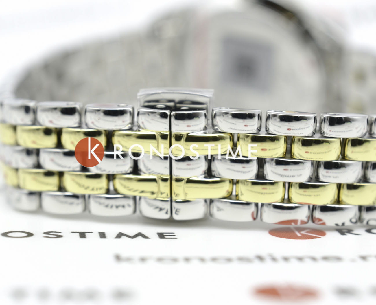 Изысканный аксессуар – лучший вариант для делового костюма или вечернего наряда. Эффектный перламутровый циферблат, бело-серого цвета дополнен незатейливым узором и золотистой часовой разметкой. Часы привлекают не только дизайном, но и абсолютной точностью: швейцарский кварцевый механизм ETA F03.412 Precidrive™Precidrive™Инновационный кварцевый механизм Certina. Часы, оснащённые этим швейцарским калибром, приравниваются к точности к сертифицированным хронометрам, точность хода составляет +/-10 секунд в год. удостоился официального сертификата COSCСертификат COSCОфициальный сертификат, подтверждающий то, что часы ходят с особо высокой точностью. Для получения документа часы подвергаются тестовым испытаниям, разработанным швейцарским институтом тестирования хронометров COSC. Допустимая норма для механических часов -4/+6 секунд в день, для кварцевых моделей +/- 0,07 секунд в день.. Система DS ConceptDS ConceptDouble Security Concept, обозначает двойную надёжность и безупречную точность часов Certina. Двойная система защиты подразумевает обеспечение максимальной устойчивости к ударам и высоких показателей водонепроницаемости.. Противокоррозионная сталь 316L с PVD-покрытиемPVDУльтратонкое покрытие наносится в технике вакуумного напыления, сочетает в себе нитрид титана особой прочности со слоем золота или оксида хрома. Несёт в себе декоративную или защитную функцию.. Степень водозащиты WR 100. Сапфировое стеклоСапфировое стеклоПрочный и надёжный материал из кристалла сапфира синтетического происхождения, характеризующийся особой твёрдостью и устойчивостью к царапинам и повреждениям. с антибликовой обработкой. Застёжка «бабочка» с кнопкамиЗастёжка "бабочка"Такой вид застёжки дополняется предохранителями, помогающими избежать случайного раскрытия браслета. Обладают изящным исполнением. . Отображение числа, индикатор EOLEOLПредставляет собой систему, уведомляющую владельца часов о необходимости замены элемента питания. За 2 недели до полного разряда батарейки секундная стрелка перестаёт ходить чётко и начинает перепрыгивать на 3-4 деления.. Диаметр корпуса: 27,5 мм.