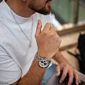 Японские наручные часы Citizen AT8238-84A сочетают в себе передовые технологии, надежность и стильный современный дизайн. Корпус и браслет выполнены из высокопрочного материала Super Titanium, который в пять раз тверже и на 40% легче стали, а также отличается высокой устойчивостью к царапинам и коррозии, а на безельБезельВнешний ободок, закрепляющий стекло. В спортивных часах так называется поворотное кольцо с делениями на циферблате, выполняет роль таймера – замеряет отрезки времени на шкале. Неподвижный безель – элемент декора. Однонаправленно вращающийся безель на дайверских часах позволяет фиксировать моменты погружения и выныривания на поверхность. нанесено черное IP-покрытиеIP-покрытиеМетод ионного напыления. Демонстрирует повышенную устойчивость к истиранию, окислению и химическим веществам. Под воздействием высокого давления и температуры около 1500°C молекулы металла надёжно соединяются с частицами корпуса часов.. Диаметр корпуса составляет 43,5 мм, толщина — 10 мм, а вес — всего 90 грамм, что обеспечивает легкость и комфорт при ежедневном ношении. Часы оснащены кварцевым хронографомХронографФункция позволяет измерять отрезки времени с особой точностью: часы, минуты, секунды. Верным признаком хронографа является наличие на циферблате 3 дополнительных окошек-счётчиков. на солнечной батарее с системой Eco-Drive, не требующей замены батарейки, и калибром Citizen H800, обеспечивающим до 6 месяцев работы без подзарядки и защиту от перезаряда. Особенностью модели является автоматическая синхронизация времени по радиосигналу в четырех регионах мира, охватывающая 26 часовых зон, а также функция мирового времениМировое время Полезное часовое усложнение, отображающее время в основных городах и известных областях по всему миру, оно связано с часовыми поясами, удобно для путешественников и бизнесменов. и вечного календаряВечный календарьКлассическое часовое усложнение, представляющее собой календарь, рассчитанный на несколько лет вперёд (стандартно – до 2099 года). Определяет текущую дату, день недели, месяц., рассчитанного до 2100 года. На белом циферблате расположены центральные часовая и минутная стрелки с люминесцентным покрытиемЛюминесцентное покрытиеПозволяет считывать показания времени в темноте. Производители наносят на стрелки, часовые индексы, безель или поверхность циферблата светонакопительный состав, дающий холодное свечение. для отличной читаемости в темноте, а также апертура даты в позиции 3 часов и отдельный малый циферблат для секундной стрелки. Часы поддерживают 12/24-часовой формат времени, оснащены секундомеромСекундомерСекундоме́р — прибор, способный измерять интервалы времени с точностью до долей секунды. с точностью 1/20 секунды и максимальным временем измерения 60 минут, а также индикатором окончания ресурса элемента питания EOLEOLПредставляет собой систему, уведомляющую владельца часов о необходимости замены элемента питания. За 2 недели до полного разряда батарейки секундная стрелка перестаёт ходить чётко и начинает перепрыгивать на 3-4 деления.. Устойчивое к царапинам сапфировое стеклоСапфировое стеклоПрочный и надёжный материал из кристалла сапфира синтетического происхождения, характеризующийся особой твёрдостью и устойчивостью к царапинам и повреждениям. с антибликовым покрытиемАнтибликовое покрытиеС