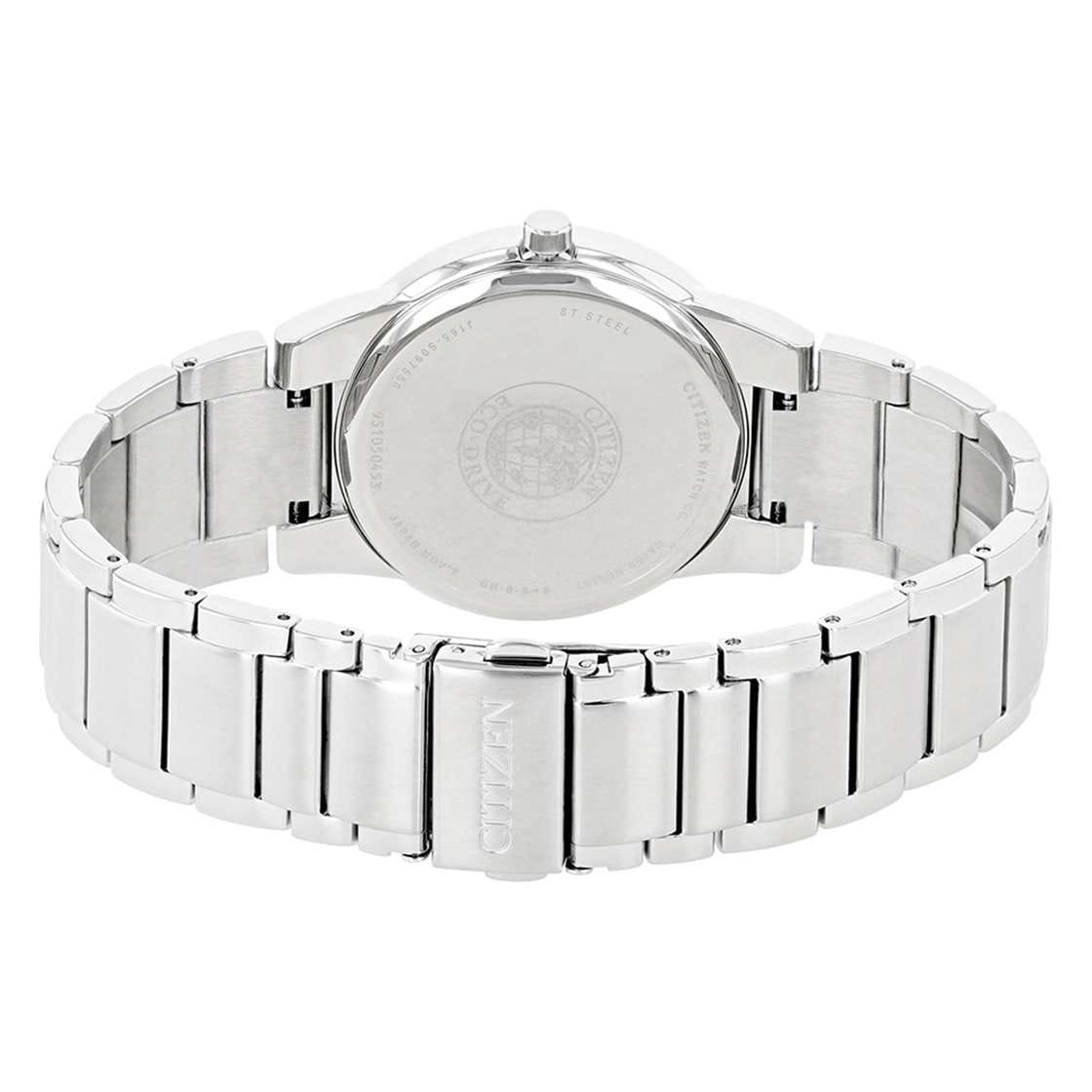 Часы Citizen AU1060-51A представлены в строгом и элегантном дизайне, идеально подходящем для делового стиля. Корпус и браслет выполнены из высококачественной нержавеющей стали, что обеспечивает долговечность и презентабельный внешний вид. Белый циферблат с минималистичным оформлением подчеркивает сдержанность модели, а окошко даты удобно расположено в положении 3 часа. Надежный кварцевый механизм Citizen J165 работает на инновационной системе Eco-Drive, которая питается от солнечной энергии и не требует замены батарейки, обеспечивая запас хода до 270 дней. Часы оснащены функцией индикации заряда EOLEOLПредставляет собой систему, уведомляющую владельца часов о необходимости замены элемента питания. За 2 недели до полного разряда батарейки секундная стрелка перестаёт ходить чётко и начинает перепрыгивать на 3-4 деления. и защитой от перезаряда. Минеральное стеклоМинеральное стеклоМинеральное стекло представляет собой искусственно выращенный минерал кварца. Такое стекло отличается особой устойчивостью к повреждениям и царапинам. Уступает по некоторым качествам сапфировому стеклу. надежно защищает циферблат от случайных повреждений, а водозащита уровня WR30 позволяет не снимать часы при случайном контакте с водой. Диаметр корпуса составляет 40 мм, что делает модель универсальным аксессуаром для любого случая. Раскладная застёжкаРаскладная застёжкаТакой тип застёжки используется только на браслетах из металла. Она никогда не раскрывается полностью, происходит разделение на 2 и более частей. Раскладывающая застёжка снизит вероятность потери часов к минимуму. на браслете обеспечивает дополнительный комфорт при носке.