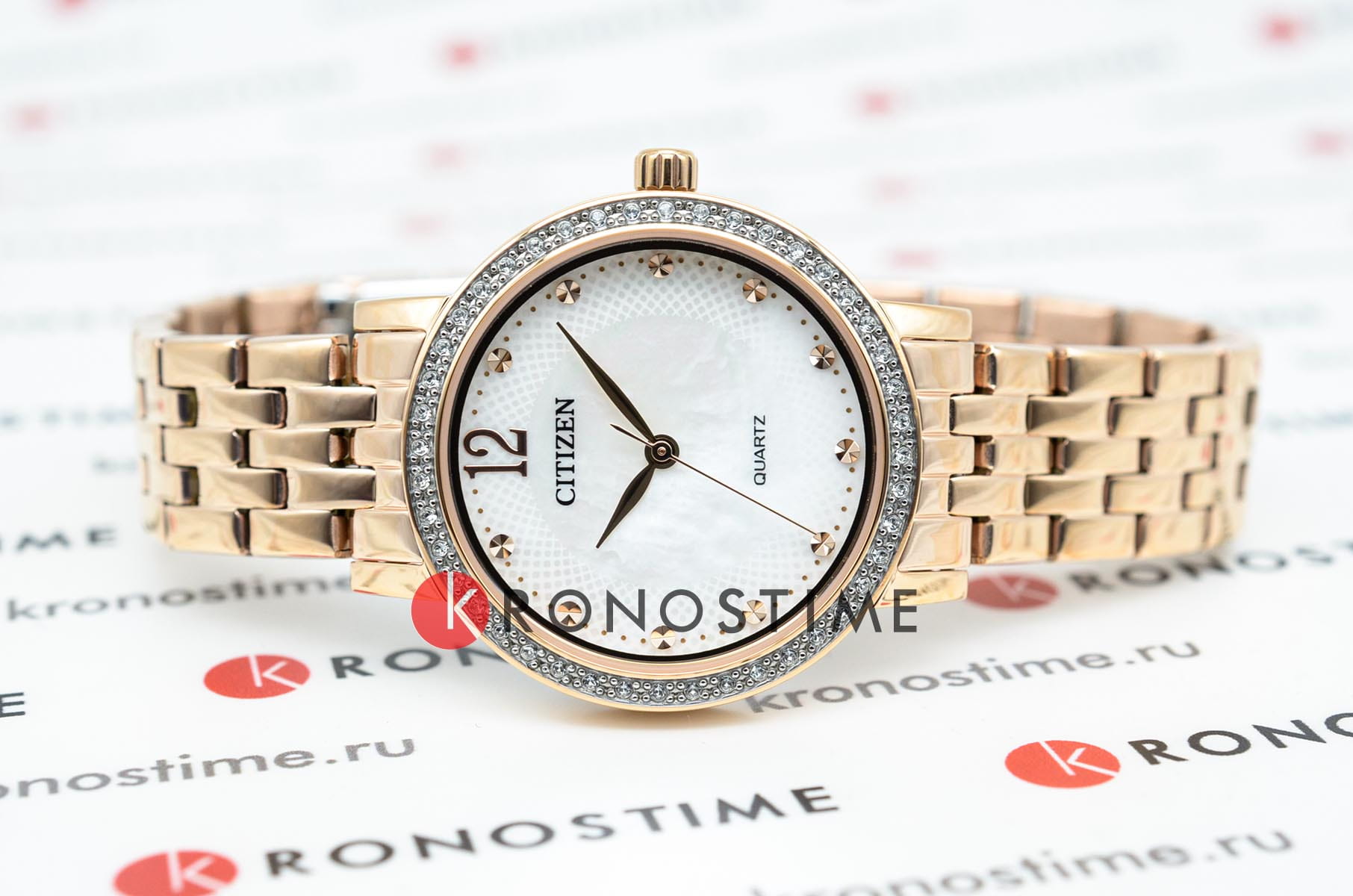 Часы Citizen EL3108-53D представляют собой элегантную модель, выполненную в Японии, сочетающую в себе современные технологии и утончённый дизайн. Корпус и браслет изготовлены из прочной нержавеющей стали с золотистым IP-покрытиемIP-покрытиеМетод ионного напыления. Демонстрирует повышенную устойчивость к истиранию, окислению и химическим веществам. Под воздействием высокого давления и температуры около 1500°C молекулы металла надёжно соединяются с частицами корпуса часов., что обеспечивает долговечность и привлекательный внешний вид. Диаметр корпуса составляет 31 мм, а толщина — всего 7 мм, что делает часы изящными и аккуратными на запястье. Особое внимание привлекает безельБезельВнешний ободок, закрепляющий стекло. В спортивных часах так называется поворотное кольцо с делениями на циферблате, выполняет роль таймера – замеряет отрезки времени на шкале. Неподвижный безель – элемент декора. Однонаправленно вращающийся безель на дайверских часах позволяет фиксировать моменты погружения и выныривания на поверхность., украшенный мерцающими кристаллами, которые придают часам особый шарм и изысканность. Надёжный кварцевый механизм гарантирует точность хода, а водозащита уровня WR 50 позволяет не снимать часы при мытье рук или во время дождя. Перламутровый циферблат украшен часовыми индексами в виде точек и цифр, а также оснащён центральными стрелками часов, минут и секунд для удобного считывания времени и кристаллами. Минеральное стеклоМинеральное стеклоМинеральное стекло представляет собой искусственно выращенный минерал кварца. Такое стекло отличается особой устойчивостью к повреждениям и царапинам. Уступает по некоторым качествам сапфировому стеклу. устойчиво к появлению мелких царапин, сохраняя прозрачность и презентабельный вид. Стальной браслет с золотистым IP-покрытиемIP-покрытиеМетод ионного напыления. Демонстрирует повышенную устойчивость к истиранию, окислению и химическим веществам. Под воздействием высокого давления и температуры около 1500°C молекулы металла надёжно соединяются с частицами корпуса часов. и раскладной застёжкойРаскладная застёжкаТакой тип застёжки используется только на браслетах из металла. Она никогда не раскрывается полностью, происходит разделение на 2 и более частей. Раскладывающая застёжка снизит вероятность потери часов к минимуму. надежно фиксирует часы на запястье, обеспечивая комфорт при ежедневном ношении.