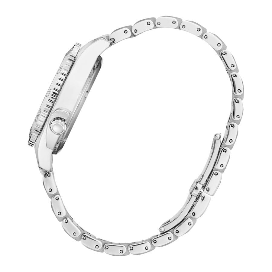 Стильные женские часы Citizen FE6161-54L созданы для тех, кто ценит надежность и элегантность в повседневных аксессуарах. Кварцевый механизм с инновационной системой Eco-Drive позволяет забыть о замене батарейки — часы заряжаются от любого источника света. Корпус диаметром 35 мм и толщиной 11 мм изготовлен из прочной нержавеющей стали, гармонично сочетающейся с металлическим браслетом с раскладной застёжкойРаскладная застёжкаТакой тип застёжки используется только на браслетах из металла. Она никогда не раскрывается полностью, происходит разделение на 2 и более частей. Раскладывающая застёжка снизит вероятность потери часов к минимуму.. Глубокий голубой циферблат украшен часовыми индексами из 11 настоящих бриллиантов, что придаёт модели изысканный блеск и особое очарование. Прочное сапфировое стеклоСапфировое стеклоПрочный и надёжный материал из кристалла сапфира синтетического происхождения, характеризующийся особой твёрдостью и устойчивостью к царапинам и повреждениям. защищает часы от царапин и сохраняет безупречный внешний вид даже при активной носке. А безельБезельВнешний ободок, закрепляющий стекло. В спортивных часах так называется поворотное кольцо с делениями на циферблате, выполняет роль таймера – замеряет отрезки времени на шкале. Неподвижный безель – элемент декора. Однонаправленно вращающийся безель на дайверских часах позволяет фиксировать моменты погружения и выныривания на поверхность. часов вращается в одном направлении. Стрелки с люминесцентным покрытиемЛюминесцентное покрытиеПозволяет считывать показания времени в темноте. Производители наносят на стрелки, часовые индексы, безель или поверхность циферблата светонакопительный состав, дающий холодное свечение. обеспечивают отличную читаемость времени даже в темное время суток. Водозащита уровня WR 100 позволяет не снимать часы во время плавания и при контакте с водой. Центральные стрелки отображают часы, минуты и секунды, а дополнительное окошко даты делает использование аксессуара максимально удобным.
