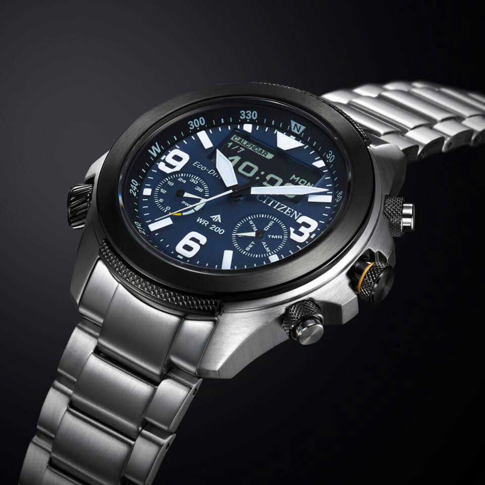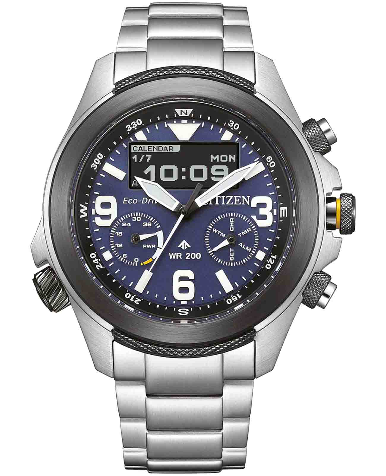 Citizen Promaster JV1006-51L часы-хронографХронографФункция позволяет измерять отрезки времени с особой точностью: часы, минуты, секунды. Верным признаком хронографа является наличие на циферблате 3 дополнительных окошек-счётчиков. с секундомеромСекундомерСекундоме́р — прибор, способный измерять интервалы времени с точностью до долей секунды. спортивного дизайна с высоким уровнем водозащиты. Корпус из нержавеющей стали диаметром 43,9 мм идеально сбалансирован. Сапфировое стеклоСапфировое стеклоПрочный и надёжный материал из кристалла сапфира синтетического происхождения, характеризующийся особой твёрдостью и устойчивостью к царапинам и повреждениям. с антибликовым покрытием обеспечивает отличную защиту циферблата от царапин. Часы работают на основе кварцевого механизма, питание от солнечной энергии. Стальной браслет на раскладной застёжкеРаскладная застёжкаТакой тип застёжки используется только на браслетах из металла. Она никогда не раскрывается полностью, происходит разделение на 2 и более частей. Раскладывающая застёжка снизит вероятность потери часов к минимуму. идеально дополняют дизайн часов, обеспечивая комфортное ношение. Стрелки и метки на циферблате имеют люминесцентное покрытиеЛюминесцентное покрытиеПозволяет считывать показания времени в темноте. Производители наносят на стрелки, часовые индексы, безель или поверхность циферблата светонакопительный состав, дающий холодное свечение. позволяющее легко определять время даже в темноте. LCD дисплей с светодиодной подсветкойСветодиодная подсветкаСветодиодная или LED-подсветка обеспечивает появление яркого холодного свечения за счёт LED-элементов - маленьких лампочек. Они потребляют минимальное количество энергии, чаще всего можно встретить 1 светодиод, в нижней части циферблата.. Вращающийся безельБезельВнешний ободок, закрепляющий стекло. В спортивных часах так называется поворотное кольцо с делениями на циферблате, выполняет роль таймера – замеряет отрезки времени на шкале. Неподвижный безель – элемент декора. Однонаправленно вращающийся безель на дайверских часах позволяет фиксировать моменты погружения и выныривания на поверхность. с IP-покрытиемIP-покрытиеМетод ионного напыления. Демонстрирует повышенную устойчивость к истиранию, окислению и химическим веществам. Под воздействием высокого давления и температуры около 1500°C молекулы металла надёжно соединяются с частицами корпуса часов. и логарифмической линейкой. Функция индикации заряда (EOL) и предотвращения перезарядки. Мировое времяМировое время Полезное часовое усложнение, отображающее время в основных городах и известных областях по всему миру, оно связано с часовыми поясами, удобно для путешественников и бизнесменов. - 43 города (29 часовых поясов), переход на зимнее и летнее время. Сплит-хронографСплит-хронографИспользуется для измерения продолжительности нескольких временных отрезков, начинающихся одновременно, а заканчивающихся в разное время.. ТаймерТаймерОтсчитывает секунды в обратном направлении в заданном интервале времени. обратного отсчета до 100мин. Секундомер с точностью 1сек и временем измерения 1ч. Всемирное координированное время UTCUTCВсемирное кординационное время, не имеющее привязки к географическому положению Гринвича, основывается на атомном отсчёте времени. Ре