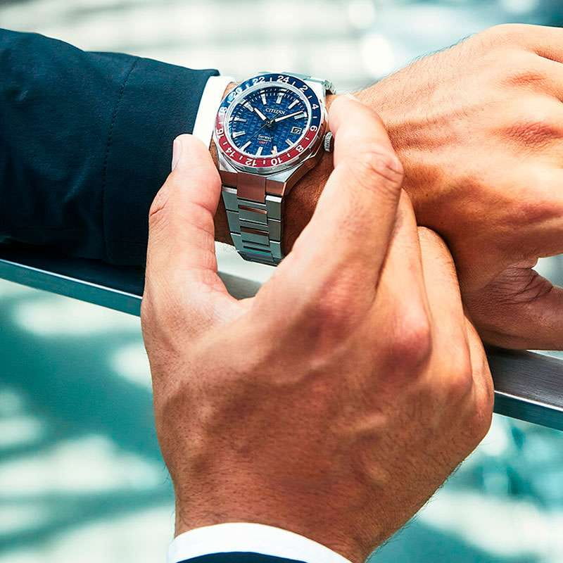 Citizen SERIES 8 NB6030-59L мужские часы спортивного дизайна с высоким уровнем водозащиты. Корпус из нержавеющей стали диаметром 41 мм идеально сбалансирован. Сапфировое стеклоСапфировое стеклоПрочный и надёжный материал из кристалла сапфира синтетического происхождения, характеризующийся особой твёрдостью и устойчивостью к царапинам и повреждениям. с антибликовым покрытием обеспечивает отличную защиту циферблата от царапин. Механические часы с автоподзаводом. Стальной браслет на раскладной застёжкеРаскладная застёжкаТакой тип застёжки используется только на браслетах из металла. Она никогда не раскрывается полностью, происходит разделение на 2 и более частей. Раскладывающая застёжка снизит вероятность потери часов к минимуму. идеально дополняют дизайн часов, обеспечивая комфортное ношение. Стрелки и метки на циферблате имеют люминесцентное покрытиеЛюминесцентное покрытиеПозволяет считывать показания времени в темноте. Производители наносят на стрелки, часовые индексы, безель или поверхность циферблата светонакопительный состав, дающий холодное свечение. позволяющее легко определять время даже в темноте. БезельБезельВнешний ободок, закрепляющий стекло. В спортивных часах так называется поворотное кольцо с делениями на циферблате, выполняет роль таймера – замеряет отрезки времени на шкале. Неподвижный безель – элемент декора. Однонаправленно вращающийся безель на дайверских часах позволяет фиксировать моменты погружения и выныривания на поверхность. с IP-покрытиемIP-покрытиеМетод ионного напыления. Демонстрирует повышенную устойчивость к истиранию, окислению и химическим веществам. Под воздействием высокого давления и температуры около 1500°C молекулы металла надёжно соединяются с частицами корпуса часов.. Окошко даты находится в положении 3 часа. Магнитоустойчивость 16000 а/м. Запас хода около 50 часов. Часы обладают впечатляющей водонепроницаемостью до 100WR, что делает их идеальными для повседневной носки. Прозрачная задняя крышка.