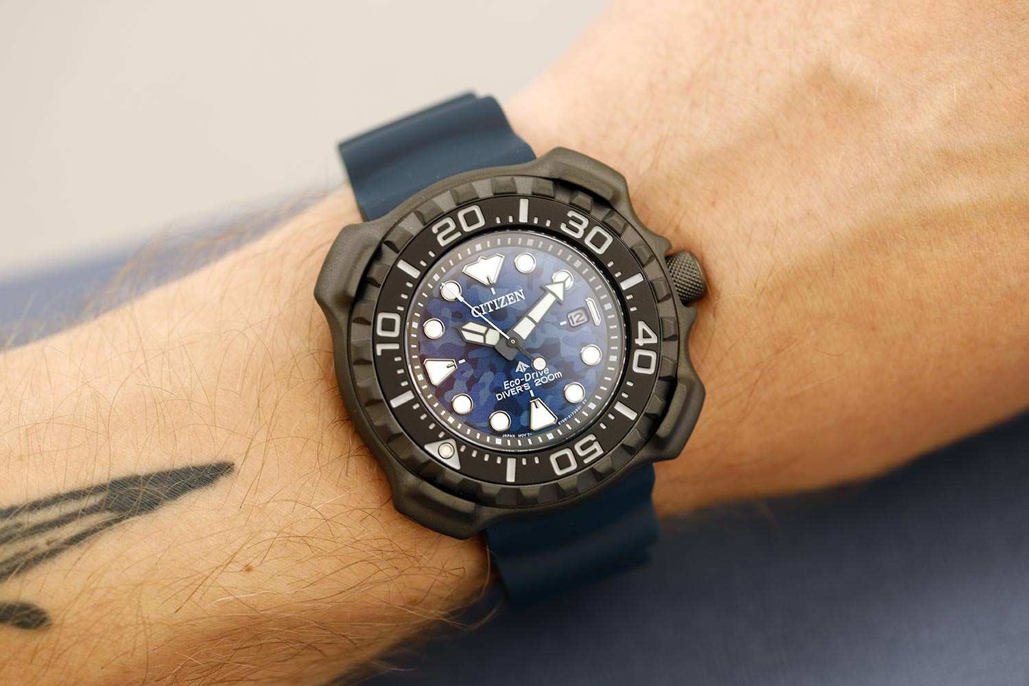 Мужские часы Citizen Promaster BN0227-09L дайверские часы станут верным спутником в вашей энергичной и спортивной жизни. Корпус из титана (Super Titanium) с DLC-покрытиемDLC-покрытиеDiamond like carbon - одно из лучших видов покрытия, представляющее собой углерод с алмазными свойствами. На поверхность материала наносятся распавшиеся молекулы углерода, превращающиеся в плёнку из алмазоподобных связей, которая перенимает твёрдость алмаза. диаметром 47,9 мм идеально сбалансирован. Минеральное стеклоМинеральное стеклоМинеральное стекло представляет собой искусственно выращенный минерал кварца. Такое стекло отличается особой устойчивостью к повреждениям и царапинам. Уступает по некоторым качествам сапфировому стеклу. обеспечивает отличную защиту циферблата от царапин. Часы работают на основе кварцевого механизма, питание от солнечной энергии, запас энергии на 180 дней. Полиуретановый ремешок на стандартной застёжке идеально дополняют дизайн часов, обеспечивая комфортное ношение. Стрелки и метки на циферблате имеют люминесцентное покрытиеЛюминесцентное покрытиеПозволяет считывать показания времени в темноте. Производители наносят на стрелки, часовые индексы, безель или поверхность циферблата светонакопительный состав, дающий холодное свечение. позволяющее легко определять время даже в темноте. Титановый безельБезельВнешний ободок, закрепляющий стекло. В спортивных часах так называется поворотное кольцо с делениями на циферблате, выполняет роль таймера – замеряет отрезки времени на шкале. Неподвижный безель – элемент декора. Однонаправленно вращающийся безель на дайверских часах позволяет фиксировать моменты погружения и выныривания на поверхность. с Duratect MRK покрытием вращается в одном направлении. Функция индикации заряда (EOL) и предотвращения перезарядки. Окошко даты находится в положении 3 часа. Часы обладают впечатляющей водонепроницаемостью до 200WR, что делает их идеальными для плавания, ныряния и погружений с аквалангом.