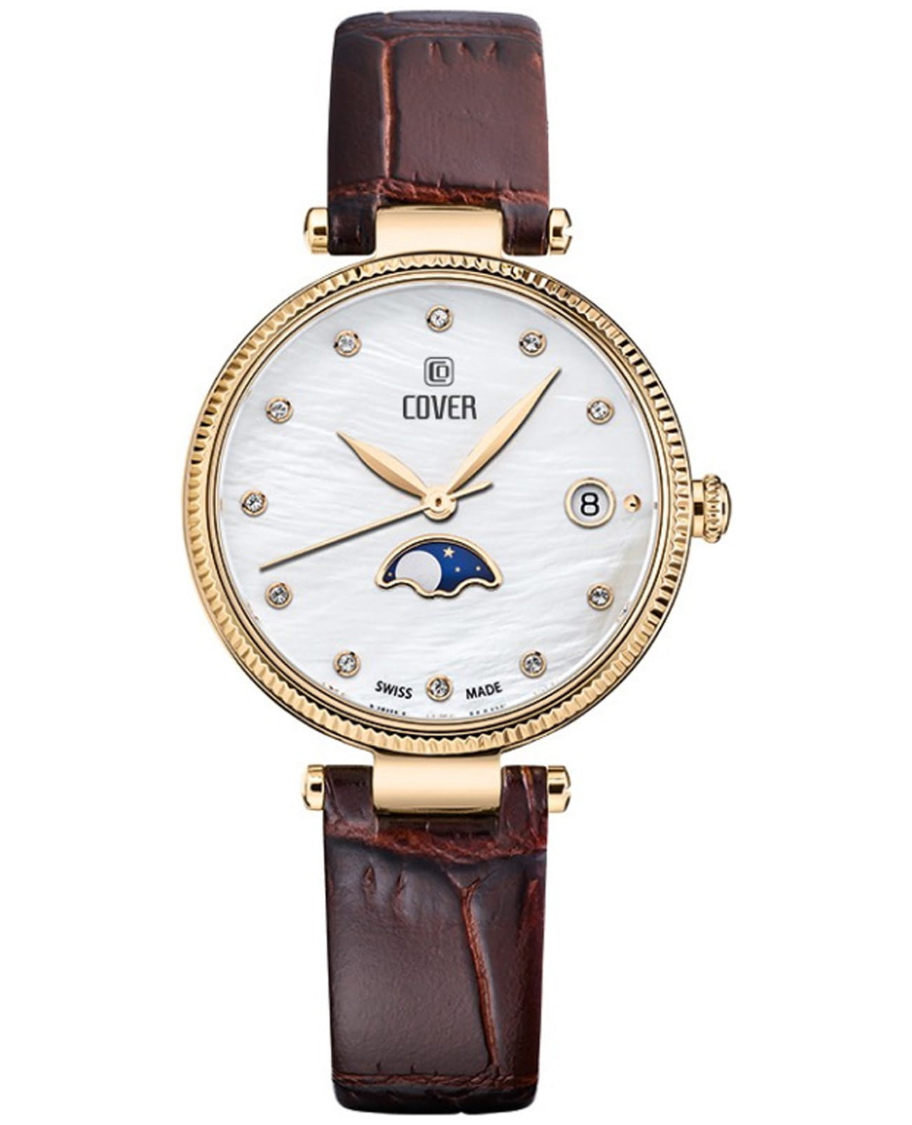 Женские часы Cover Moon CO196.05 - это аксессуар для истинных леди из коллекции Fly Me To The Moon. Часы работают на кварцевом калибре ETA. Циферблат выполнен в белом перламутровом исполнении, создавая игру света при каждом движении запястья, и украшен 11 кристаллами Swarovski, которые служат часовым индикатором, добавляя блики света и роскоши. Кроме того, модель имеет окно фаз Луны на «6 часах» и апертуру даты на «3 часах», что делает ее функциональной для ценителей астрономических усложнений. Часы имеют 32-миллиметровый корпус из нержавеющей стали с PVD-покрытиемPVDУльтратонкое покрытие наносится в технике вакуумного напыления, сочетает в себе нитрид титана особой прочности со слоем золота или оксида хрома. Несёт в себе декоративную или защитную функцию. цвета желтого золота. Водонепроницаемость часов достигает 5 атмосфер (WR 50), что позволяет использовать их в повседневной жизни, однако не рекомендуется для контакта с водой во время плавания или дайвинга. Маркировка «Swiss Made». Кожаный ремешок на классической застежке.