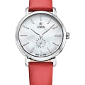 Женские наручные часы Cover CO199.01 из коллекции Cover Pearl Dreams сочетают в себе элегантность и точность швейцарского производства. Модель обладает круглым корпусом диаметром 34 мм, изготовленным из нержавеющей стали с полированным покрытием. Ремешок выполнен из красной кожи, на классической застежке для комфортного ношения. Белый перламутровый циферблат украшен лаконичными индексами, секундная стрелка вынесена на субциферблат. Для защиты используется минеральное стеклоМинеральное стеклоМинеральное стекло представляет собой искусственно выращенный минерал кварца. Такое стекло отличается особой устойчивостью к повреждениям и царапинам. Уступает по некоторым качествам сапфировому стеклу. с сапфировым покрытием, обеспечивающее ударопрочность и превосходную читаемость времени.  Часы работают на высокоточном кварцевом механизме, гарантирующем исключительную точность хода без необходимости подзаводки. Водонепроницаемость часов достигает 5 атмосфер (WR 50), что позволяет использовать их в повседневной жизни, однако не рекомендуется для контакта с водой во время плавания или дайвинга. Эти швейцарские часы станут идеальным дополнением как классического, так и повседневного образа женщины, ценящей элегантность и качество.