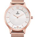 Женские наручные часы Cover CO2037.09 из коллекции Essential сочетают в себе классический дизайн и высокую точность швейцарского производства. Модель обладает круглым корпусом диаметром 38 мм, изготовленным из нержавеющей стали с PVD-покрытиемPVDУльтратонкое покрытие наносится в технике вакуумного напыления, сочетает в себе нитрид титана особой прочности со слоем золота или оксида хрома. Несёт в себе декоративную или защитную функцию. цвета розового золота, что придает изделию благородный внешний вид. Для защиты используется сапфировое стеклоСапфировое стеклоПрочный и надёжный материал из кристалла сапфира синтетического происхождения, характеризующийся особой твёрдостью и устойчивостью к царапинам и повреждениям. с антибликовым покрытиемАнтибликовое покрытиеСлой оксида металла в 0,13-0,3 микрон, благодаря которому стекло часов не бликует и не отражает свет. Антибликовое покрытие уменьшает отражение света в 10 раз, обеспечивая отличную читаемость показателей циферблата., обеспечивающее прочную защиту от царапин и превосходную читаемость времени даже при ярком свете. Часы работают на высокоточном кварцевом механизме, гарантирующем исключительную точность хода с погрешностью около 20 секунд в месяц. Браслет "миланского плетения" выполнен из нержавеющей стали с PVD-покрытиемPVDУльтратонкое покрытие наносится в технике вакуумного напыления, сочетает в себе нитрид титана особой прочности со слоем золота или оксида хрома. Несёт в себе декоративную или защитную функцию. цвета розового золота и оснащен раскладным замком, который легко можно подогнать по руке. Водонепроницаемость достигает 5 атмосфер (50 метров), что позволяет использовать их во время дождя и мытья рук, но не рекомендуется для плавания. Эти швейцарские часы станут идеальным дополнением как классического, так и современного образа.