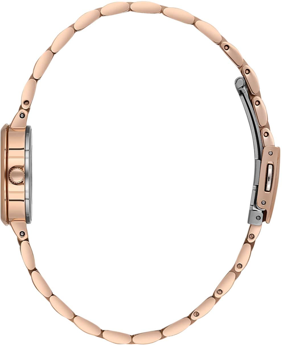 Женские кварцевые часы Daniel Klein — это элегантный и универсальный аксессуар. Корпус диаметром 24 мм выполнен из металла с IP-покрытиемIP-покрытиеМетод ионного напыления. Демонстрирует повышенную устойчивость к истиранию, окислению и химическим веществам. Под воздействием высокого давления и температуры около 1500°C молекулы металла надёжно соединяются с частицами корпуса часов. цвета розового золота. Циферблат зелёного цвета выполнен по технологии Sunray («солнечные лучи») и оформлен штрихами и стрелками. Циферблат защищён минеральным стекломМинеральное стеклоМинеральное стекло представляет собой искусственно выращенный минерал кварца. Такое стекло отличается особой устойчивостью к повреждениям и царапинам. Уступает по некоторым качествам сапфировому стеклу.. Часы оснащены стальным браслетом с IP-покрытиемIP-покрытиеМетод ионного напыления. Демонстрирует повышенную устойчивость к истиранию, окислению и химическим веществам. Под воздействием высокого давления и температуры около 1500°C молекулы металла надёжно соединяются с частицами корпуса часов. на раскладной застёжкеРаскладная застёжкаТакой тип застёжки используется только на браслетах из металла. Она никогда не раскрывается полностью, происходит разделение на 2 и более частей. Раскладывающая застёжка снизит вероятность потери часов к минимуму.. Водонепроницаемость 30 м позволяет использовать часы в повседневных условиях. Идеальный выбор для тех, кто ценит турецкое качество и классический дизайн.