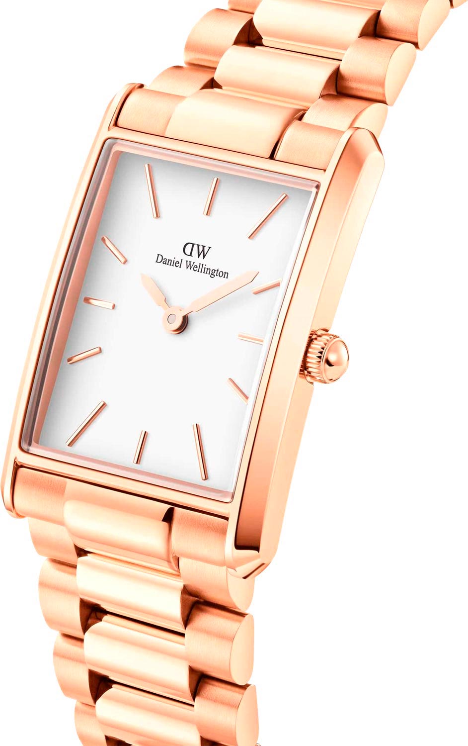 Женские наручные часы с минеральным стекломМинеральное стеклоМинеральное стекло представляет собой искусственно выращенный минерал кварца. Такое стекло отличается особой устойчивостью к повреждениям и царапинам. Уступает по некоторым качествам сапфировому стеклу. Daniel Wellington Bound 3-Link Rose Gold DW00100702, кварцевый механизм с высокой точностью. Корпус часов изготовлен из нержавеющей стали с PVD-покрытиемPVDУльтратонкое покрытие наносится в технике вакуумного напыления, сочетает в себе нитрид титана особой прочности со слоем золота или оксида хрома. Несёт в себе декоративную или защитную функцию.. Накладные метки в виде штрихов. Японский кварцевый механизм. Рифленая заводная головка. Класс водозащиты: 30 метров, позволит защитить корпус от случайных брызг или капель дождя. Стальной браслет на раскладной застёжкеРаскладная застёжкаТакой тип застёжки используется только на браслетах из металла. Она никогда не раскрывается полностью, происходит разделение на 2 и более частей. Раскладывающая застёжка снизит вероятность потери часов к минимуму. с PVD-покрытиемPVDУльтратонкое покрытие наносится в технике вакуумного напыления, сочетает в себе нитрид титана особой прочности со слоем золота или оксида хрома. Несёт в себе декоративную или защитную функцию..