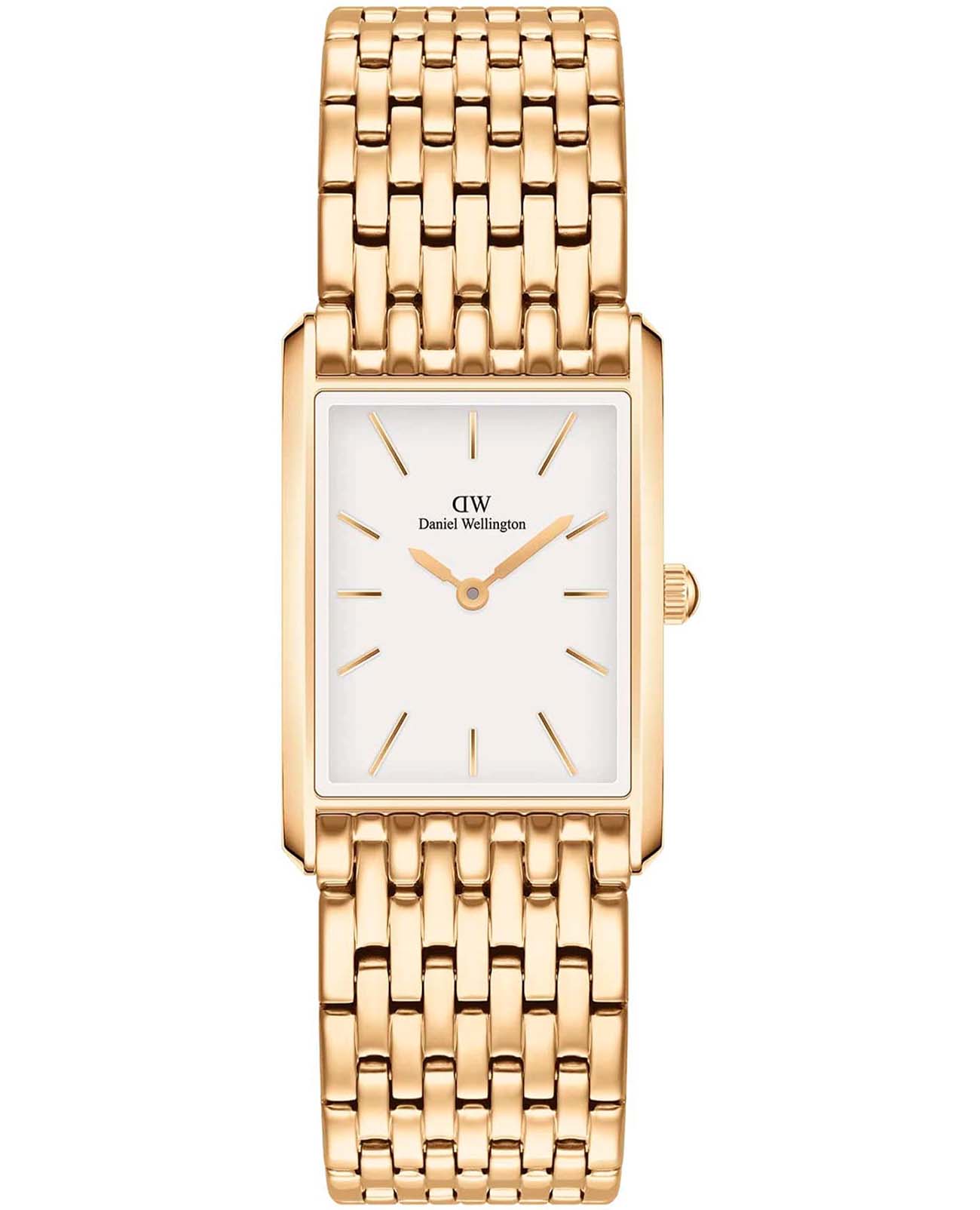 Женские наручные часы с минеральным стекломМинеральное стеклоМинеральное стекло представляет собой искусственно выращенный минерал кварца. Такое стекло отличается особой устойчивостью к повреждениям и царапинам. Уступает по некоторым качествам сапфировому стеклу. Daniel Wellington Bound 9-Link Gold DW00100705, кварцевый механизм с высокой точностью. Корпус часов изготовлен из нержавеющей стали с PVD-покрытиемPVDУльтратонкое покрытие наносится в технике вакуумного напыления, сочетает в себе нитрид титана особой прочности со слоем золота или оксида хрома. Несёт в себе декоративную или защитную функцию.. Накладные метки в виде штрихов. Японский кварцевый механизм. Рифленая заводная головка. Класс водозащиты: 30 метров, позволит защитить корпус от случайных брызг или капель дождя. Стальной браслет на раскладной застёжкеРаскладная застёжкаТакой тип застёжки используется только на браслетах из металла. Она никогда не раскрывается полностью, происходит разделение на 2 и более частей. Раскладывающая застёжка снизит вероятность потери часов к минимуму. с PVD-покрытиемPVDУльтратонкое покрытие наносится в технике вакуумного напыления, сочетает в себе нитрид титана особой прочности со слоем золота или оксида хрома. Несёт в себе декоративную или защитную функцию..