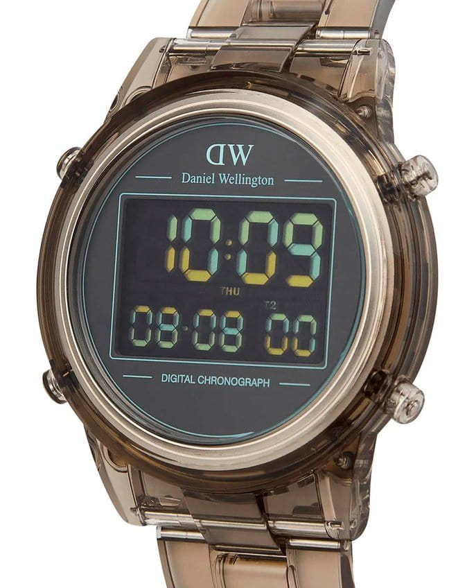 Наручные часы Daniel Wellington Retro Digital DW00100766 представляют собой стильный аксессуар с ретро дизайном. Модель обладает круглым корпусом диаметром 42 мм, выполненным из экологичного пластика и нержавеющей стали, что обеспечивает прочность и устойчивость к внешним воздействиям . Цифровой черный циферблат подчеркивает современный вид модели и оснащен функцией хронографаХронографФункция позволяет измерять отрезки времени с особой точностью: часы, минуты, секунды. Верным признаком хронографа является наличие на циферблате 3 дополнительных окошек-счётчиков. . Ремешок выполнен из прозрачного биопластика на застёжке «бабочка» с кнопкамиЗастёжка "бабочка"Такой вид застёжки дополняется предохранителями, помогающими избежать случайного раскрытия браслета. Обладают изящным исполнением. , гарантирующей комфортное ношение . Часы работают на кварцевом механизме с цифровым дисплеем, поддерживающим такие функции, как секундомерСекундомерСекундоме́р — прибор, способный измерять интервалы времени с точностью до долей секунды., таймерТаймерОтсчитывает секунды в обратном направлении в заданном интервале времени., будильникБудильникБуди́льник — часы, в заданный момент времени подающие звуковой, световой и/или в редких случаях другой сигнал. и автоматический календарь, что делает их практичным выбором для повседневного использования . Для защиты циферблата используется органическое стекло. Водонепроницаемость часов составляет 30 метров / 3 ATM, что позволяет использовать их при мытье рук или в дождь, но не рекомендуется для плавания . Простой дизайн этих часов делает их универсальным аксессуаром, сохраняющим баланс между функциональностью и элегантностью .