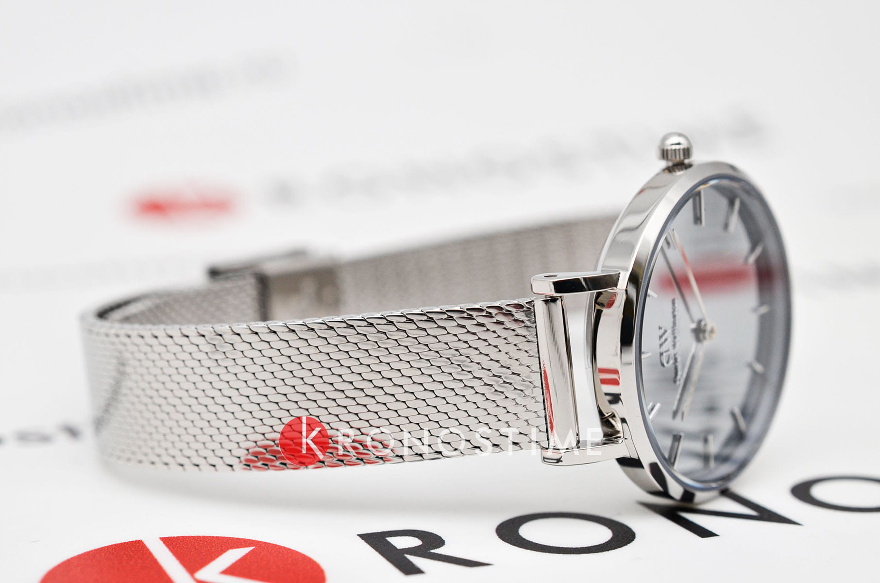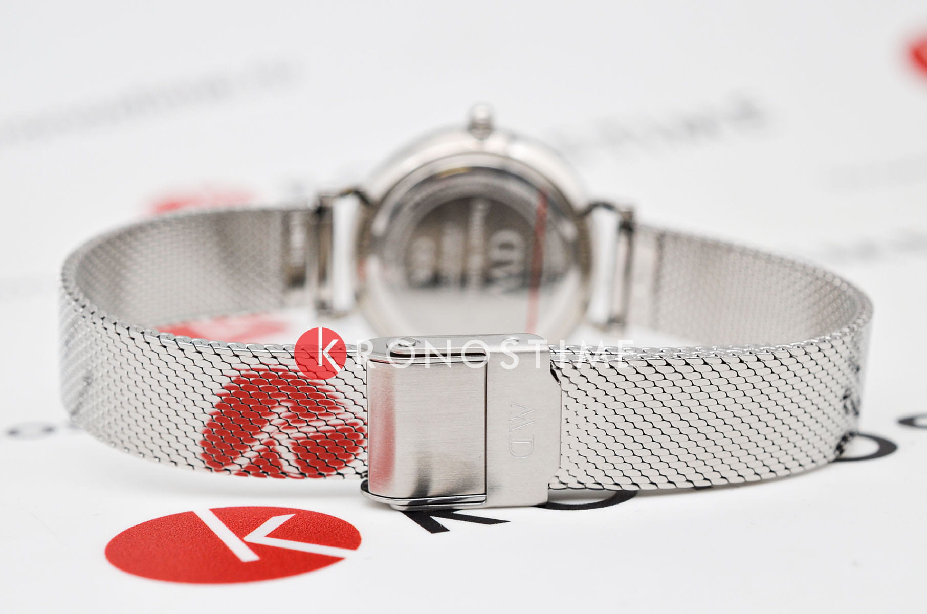 Женские наручные часы с минеральным стекломМинеральное стеклоМинеральное стекло представляет собой искусственно выращенный минерал кварца. Такое стекло отличается особой устойчивостью к повреждениям и царапинам. Уступает по некоторым качествам сапфировому стеклу. Daniel Wellington Petite Reflection Silver DW00100796, кварцевый механизм с высокой точностью. Корпус часов изготовлен из нержавеющей стали. Накладные метки в виде штрихов. Японский кварцевый механизм. Рифленая заводная головка. Класс водозащиты: 30 метров, позволит защитить корпус от случайных брызг или капель дождя. Стальной браслет миланского плетения на раскладном замкеРаскладной замокДанный вариант застежки используется только на часах с металлическим браслетом. Отличительная особенность такого крепления в том, что длина браслета становится универсальной и вы можете самостоятельно отрегулировать нужный вам размер – застежка просто двигается по браслету часов..