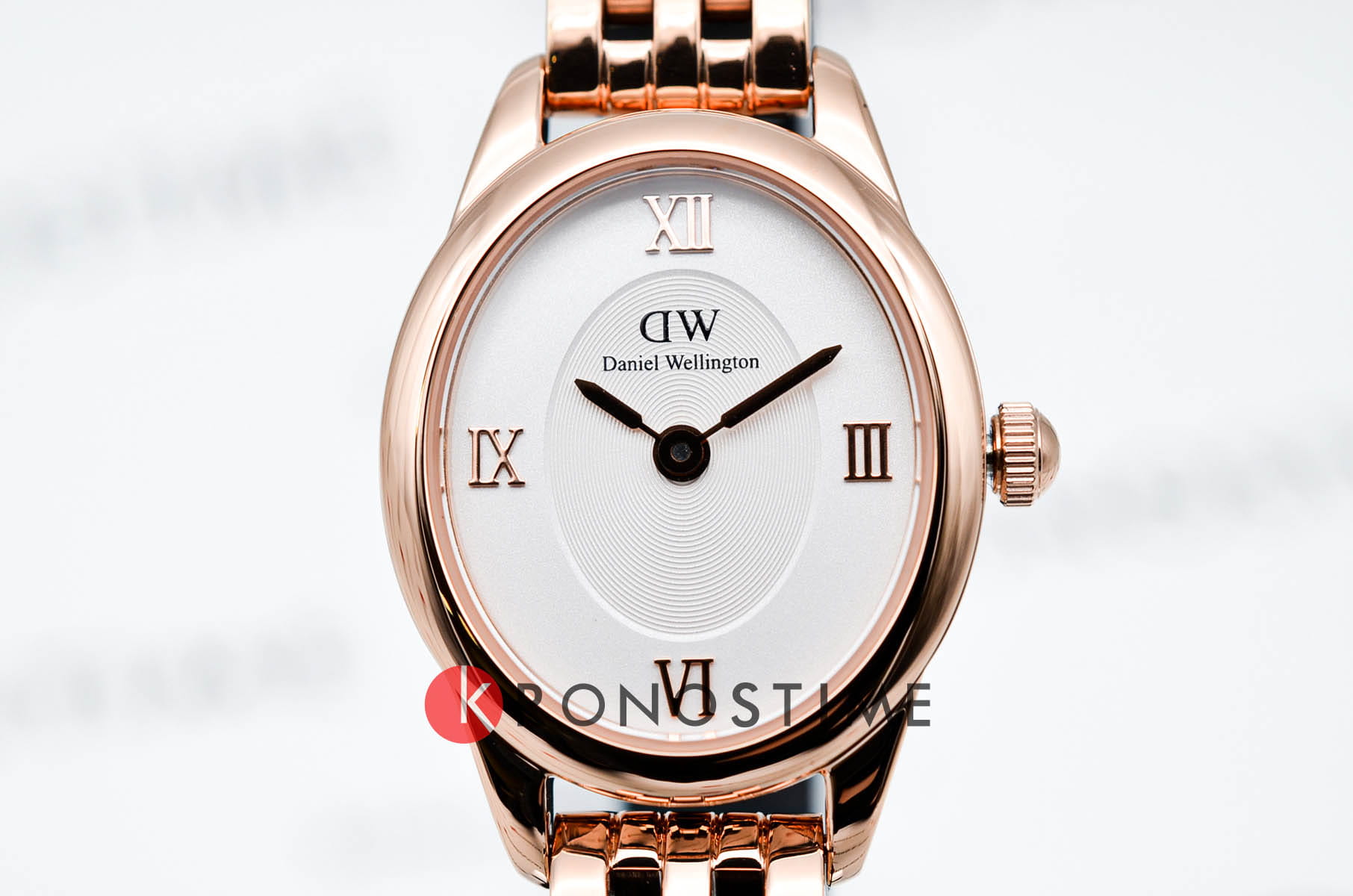 Daniel Wellington Ophelia — женственные часы с овальным корпусом 22 мм из нержавеющей стали с изящным PVDPVDУльтратонкое покрытие наносится в технике вакуумного напыления, сочетает в себе нитрид титана особой прочности со слоем золота или оксида хрома. Несёт в себе декоративную или защитную функцию.-покрытием в цвете золота. Глубокий циферблат с радиальным переливом украшен римскими индексами, что придаёт образу классическую элегантность.