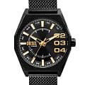 Мужские наручные часы с минеральным стекломМинеральное стеклоМинеральное стекло представляет собой искусственно выращенный минерал кварца. Такое стекло отличается особой устойчивостью к повреждениям и царапинам. Уступает по некоторым качествам сапфировому стеклу. Diesel Scraper DZ2194, кварцевый механизм с высокой точностью. Класс водозащиты: 50 метров, позволит защитить корпус от случайных брызг или капель дождя. Корпус и браслет часов изготовлены из нержавеющей стали с IP-покрытиемIP-покрытиеМетод ионного напыления. Демонстрирует повышенную устойчивость к истиранию, окислению и химическим веществам. Под воздействием высокого давления и температуры около 1500°C молекулы металла надёжно соединяются с частицами корпуса часов.. Стальной браслет на раскладном замкеРаскладной замокДанный вариант застежки используется только на часах с металлическим браслетом. Отличительная особенность такого крепления в том, что длина браслета становится универсальной и вы можете самостоятельно отрегулировать нужный вам размер – застежка просто двигается по браслету часов.. Метки в виде штрихов и арабских цифр. Циферблат выполнен по технологии Sunray (солнечные лучи). Стрелки и метки с люминесцентным покрытиемЛюминесцентное покрытиеПозволяет считывать показания времени в темноте. Производители наносят на стрелки, часовые индексы, безель или поверхность циферблата светонакопительный состав, дающий холодное свечение..