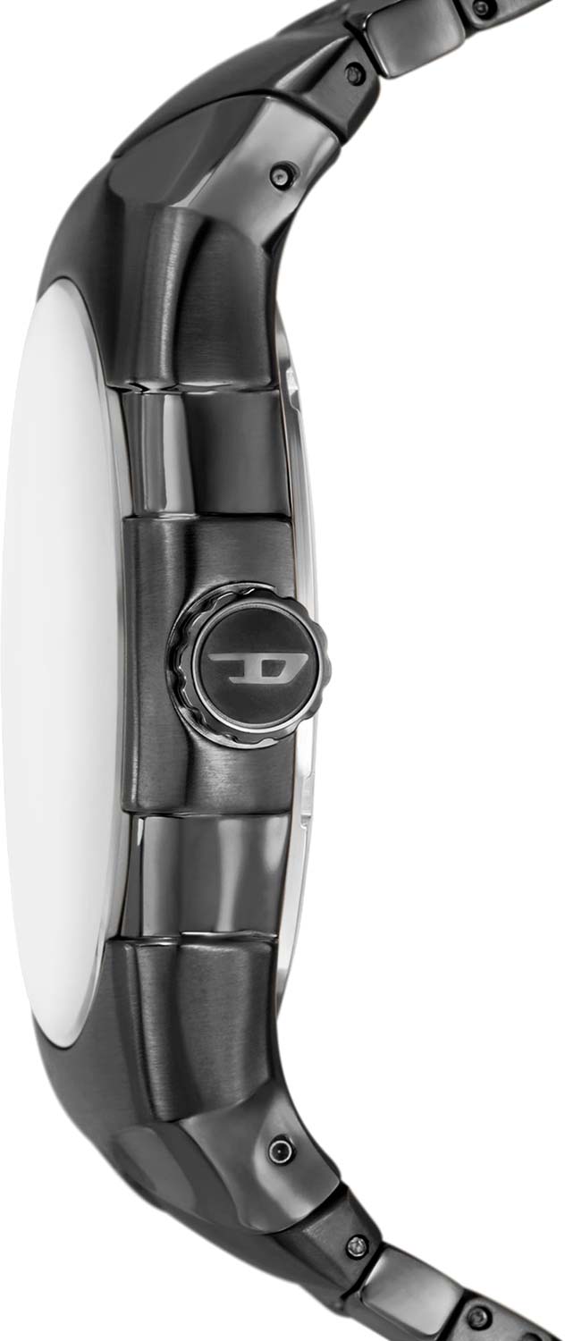 Мужские кварцевые часы Diesel DZ2213 — это стильный и современный аксессуар, подчёркивающий индивидуальность и хороший вкус своего владельца. Модель выполнена в смелом дизайне, сочетающем матовые и полированные поверхности, что придаёт модели динамику и выразительность. Корпус изготовлен из нержавеющей стали с покрытием чёрного цвета, устойчивым к царапинам и внешним воздействиям. Циферблат серебристого оттенка выполнен по технологии Sunray, создающей эффект расходящихся солнечных лучей, и дополнен штриховыми метками. Защиту циферблата обеспечивает минеральное стеклоМинеральное стеклоМинеральное стекло представляет собой искусственно выращенный минерал кварца. Такое стекло отличается особой устойчивостью к повреждениям и царапинам. Уступает по некоторым качествам сапфировому стеклу., выдерживающее повседневные нагрузки. Заводная головка имеет рифлёную форму, что делает её удобной в использовании и добавляет модели спортивного акцента. Часы водонепроницаемы до 50 метров (), что позволяет использовать их в повседневных условиях — при мытье рук или под дождём. Браслет из стали с чёрным покрытием оснащён раскладной застёжкойРаскладная застёжкаТакой тип застёжки используется только на браслетах из металла. Она никогда не раскрывается полностью, происходит разделение на 2 и более частей. Раскладывающая застёжка снизит вероятность потери часов к минимуму. с двумя кнопками, обеспечивающей надёжную фиксацию и комфорт при ношении. Диаметр корпуса составляет 42 мм, толщина — 10 мм, что делает часы сбалансированными и удобными на запястье. Эти часы станут универсальным аксессуаром для тех, кто ценит сочетание стиля, надёжности и современного дизайна — идеальный выбор для уверенных в себе мужчин, следящих за образом и предпочитающих выделяться.
