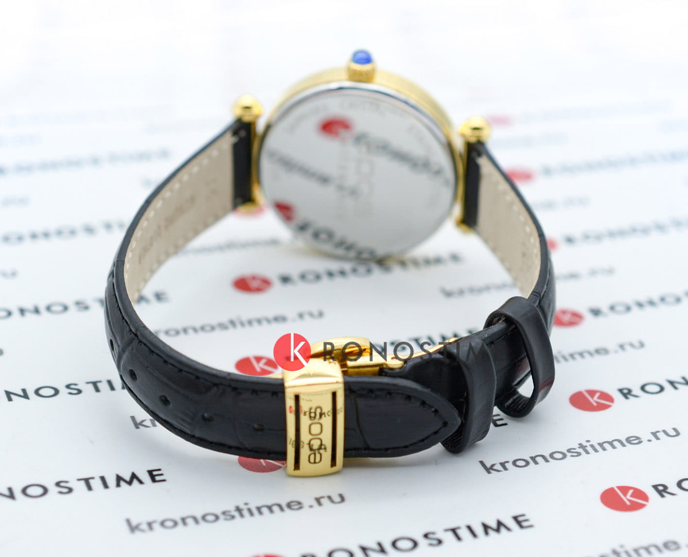 Женские швейцарские наручные часы с кварцевым механизмом с высокой точностью. Сапфировое стеклоСапфировое стеклоПрочный и надёжный материал из кристалла сапфира синтетического происхождения, характеризующийся особой твёрдостью и устойчивостью к царапинам и повреждениям. устойчивое к появлению царапин, обладающее высокой прозрачностью. Класс водозащиты: 30 метров, позволит защитить корпус от случайных брызг или капель дождя. Корпус часов изготовлен из стали с PVD-покрытиемPVDУльтратонкое покрытие наносится в технике вакуумного напыления, сочетает в себе нитрид титана особой прочности со слоем золота или оксида хрома. Несёт в себе декоративную или защитную функцию.. Кожаный ремешок с классической застежкой.<br>