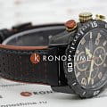 Часы-хронографХронографФункция позволяет измерять отрезки времени с особой точностью: часы, минуты, секунды. Верным признаком хронографа является наличие на циферблате 3 дополнительных окошек-счётчиков.. Кварцевый механизм с высокой точностью. Минеральное стеклоМинеральное стеклоМинеральное стекло представляет собой искусственно выращенный минерал кварца. Такое стекло отличается особой устойчивостью к повреждениям и царапинам. Уступает по некоторым качествам сапфировому стеклу. устойчивое к появлению царапин, обладающее высокой прозрачностью. Класс водозащиты: 100 метров, позволит плавать, нырять и заниматься другими водными видами спорта. Стрелки и метки с люминесцентным покрытиемЛюминесцентное покрытиеПозволяет считывать показания времени в темноте. Производители наносят на стрелки, часовые индексы, безель или поверхность циферблата светонакопительный состав, дающий холодное свечение.. Корпус часов изготовлен из нержавеющей стали c PVD-покрытиемPVDУльтратонкое покрытие наносится в технике вакуумного напыления, сочетает в себе нитрид титана особой прочности со слоем золота или оксида хрома. Несёт в себе декоративную или защитную функцию.. Кожаный ремешок с классической застежкой.