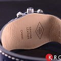 Мужские наручные часы, оснащённые хронографом с тахометрической шкалой, выполненные в спортивном стиле на широком кожаном ремешке.