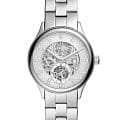 Женские американские часы Fossil Bannon BQ3649, механический механизм (автоматический калибр) с высокой точностью. Класс водозащиты: 50 метров, позволит защитить корпус от случайных брызг или капель дождя. Корпус часов изготовлен из стали, серебристого цвета.