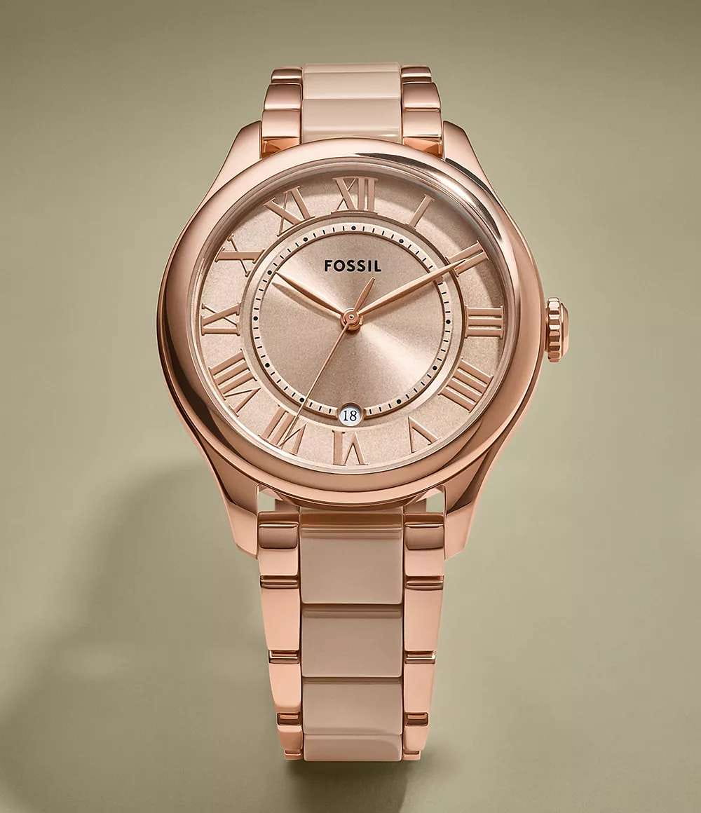 Женские кварцевые часы Fossil — это элегантный аксессуар, сочетающий стиль и надежность. Модель CE1133 выполнена в круглом корпусе диаметром 38 мм из нержавеющей стали с IP-покрытиемIP-покрытиеМетод ионного напыления. Демонстрирует повышенную устойчивость к истиранию, окислению и химическим веществам. Под воздействием высокого давления и температуры около 1500°C молекулы металла надёжно соединяются с частицами корпуса часов.. Циферблат бежевого цвета оформлен индексами и стрелками. Окошко даты расположено в положении 6 часов. Циферблат защищён минеральным стекломМинеральное стеклоМинеральное стекло представляет собой искусственно выращенный минерал кварца. Такое стекло отличается особой устойчивостью к повреждениям и царапинам. Уступает по некоторым качествам сапфировому стеклу.. Часы оснащены браслетом из керамики и стали с IP-покрытиемIP-покрытиеМетод ионного напыления. Демонстрирует повышенную устойчивость к истиранию, окислению и химическим веществам. Под воздействием высокого давления и температуры около 1500°C молекулы металла надёжно соединяются с частицами корпуса часов. на застёжке «бабочка» с кнопкамиЗастёжка "бабочка"Такой вид застёжки дополняется предохранителями, помогающими избежать случайного раскрытия браслета. Обладают изящным исполнением. . Водонепроницаемость 50 м позволяет использовать часы для плавания и повседневного ношения. Идеальный выбор для тех, кто ценит американское качество и безупречный дизайн.
