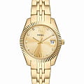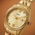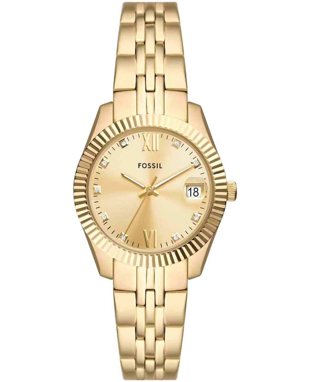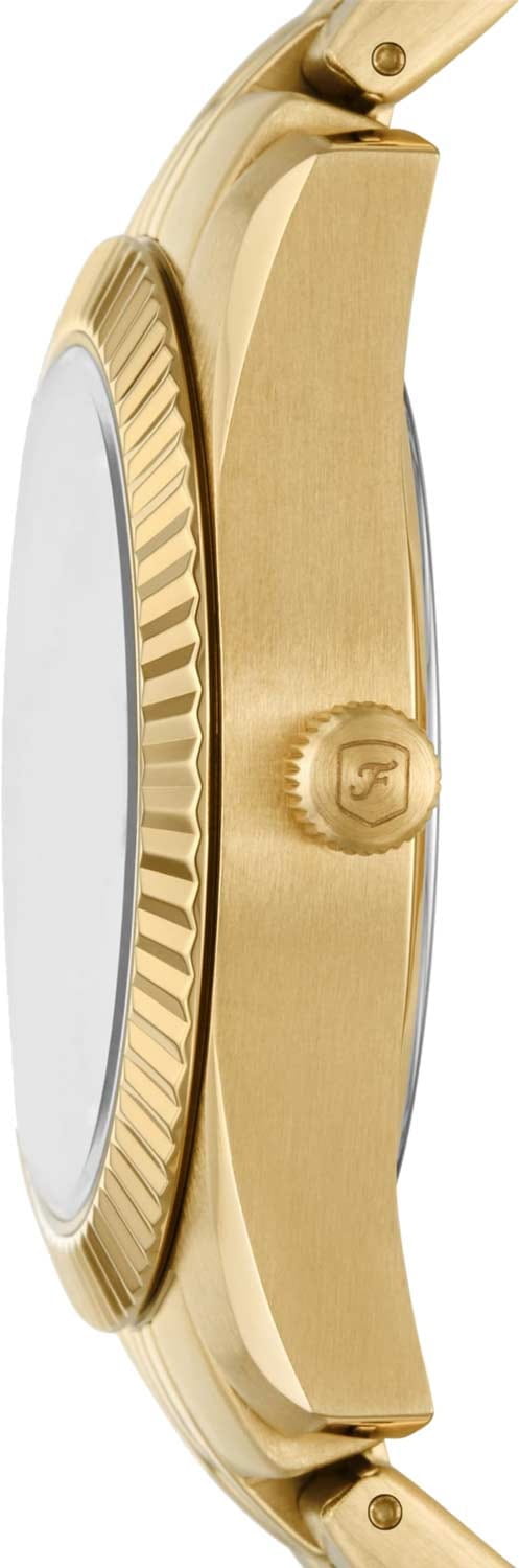 Часы Fossil ES5338 - это стильный аксессуар, который станет ярким дополнением к вашему повседневному или вечернему образу. Эти наручные часы выделяются своим утонченным дизайном и высоким качеством исполнения. Корпус изготовлен из стали с золотистым IP-покрытиемIP-покрытиеМетод ионного напыления. Демонстрирует повышенную устойчивость к истиранию, окислению и химическим веществам. Под воздействием высокого давления и температуры около 1500°C молекулы металла надёжно соединяются с частицами корпуса часов., что придаёт ему долговечность и изысканный внешний вид. Циферблат золотистого цвета, выполненный по технологии Sunray, украшен кристаллами, которые добавляют ему блеска и элегантности. Часы снабжены римскими цифрами VI и XII, а также метками в виде точек, что делает их не только красивыми, но и функциональными. Удобное окошко даты с увеличительным стеклом расположено в положении 3 часа, облегчая считывание информации. Особое внимание привлекает рифленый безельБезельВнешний ободок, закрепляющий стекло. В спортивных часах так называется поворотное кольцо с делениями на циферблате, выполняет роль таймера – замеряет отрезки времени на шкале. Неподвижный безель – элемент декора. Однонаправленно вращающийся безель на дайверских часах позволяет фиксировать моменты погружения и выныривания на поверхность. с золотистым IP-покрытиемIP-покрытиеМетод ионного напыления. Демонстрирует повышенную устойчивость к истиранию, окислению и химическим веществам. Под воздействием высокого давления и температуры около 1500°C молекулы металла надёжно соединяются с частицами корпуса часов..  Люминесцентное покрытиеЛюминесцентное покрытиеПозволяет считывать показания времени в темноте. Производители наносят на стрелки, часовые индексы, безель или поверхность циферблата светонакопительный состав, дающий холодное свечение. на стрелках и метках обеспечивает отличную видимость в темноте. Заводная головка имеет рифленую поверхность, что позволяет легко настраивать время. Браслет из полированной стали с IP-покрытиемIP-покрытиеМетод ионного напыления. Демонстрирует повышенную устойчивость к истиранию, окислению и химическим веществам. Под воздействием высокого давления и температуры около 1500°C молекулы металла надёжно соединяются с частицами корпуса часов. и раскладной застёжкойРаскладная застёжкаТакой тип застёжки используется только на браслетах из металла. Она никогда не раскрывается полностью, происходит разделение на 2 и более частей. Раскладывающая застёжка снизит вероятность потери часов к минимуму. обеспечивает комфортное ношение и надежную фиксацию на запястье. Водозащита 50WR защищает механизм от случайных брызг. Минеральное стеклоМинеральное стеклоМинеральное стекло представляет собой искусственно выращенный минерал кварца. Такое стекло отличается особой устойчивостью к повреждениям и царапинам. Уступает по некоторым качествам сапфировому стеклу. защищает циферблат от повреждений. Часы имеют компактные размеры: диаметр корпуса составляет 32 мм, ширина браслета - 16 мм, а его длина - 175 мм. Этот аксессуар от Fossil подчеркнёт вашу индивидуальность и станет верным спутником в любых ситуациях.