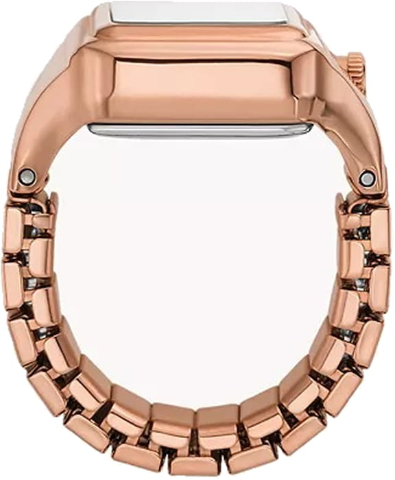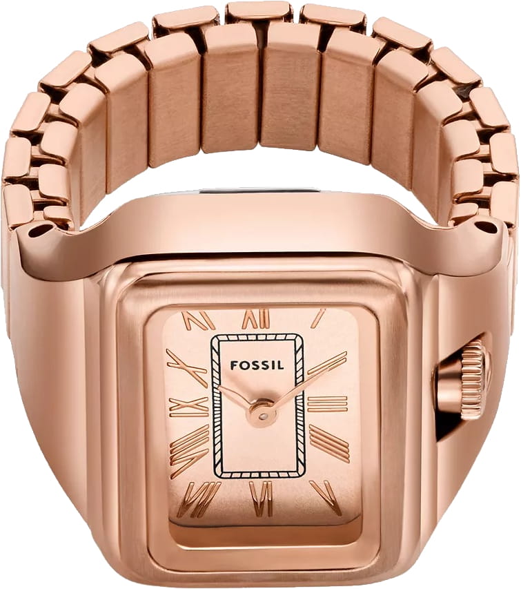 Уникальные часы-кольцо с минеральным стекломМинеральное стеклоМинеральное стекло представляет собой искусственно выращенный минерал кварца. Такое стекло отличается особой устойчивостью к повреждениям и царапинам. Уступает по некоторым качествам сапфировому стеклу. Fossil Raquel Ring ES5345, кварцевый механизм с высокой точностью. Корпус и браслет часов изготовлены из нержавеющей стали с IP-покрытиемIP-покрытиеМетод ионного напыления. Демонстрирует повышенную устойчивость к истиранию, окислению и химическим веществам. Под воздействием высокого давления и температуры около 1500°C молекулы металла надёжно соединяются с частицами корпуса часов.. Класс водозащиты: 50 метров, позволит защитить корпус от случайных брызг или капель дождя. Циферблат выполнен с метками в виде штрихов. С помощью расширительного ремешка Вы сможете надеть модель на любой палец.