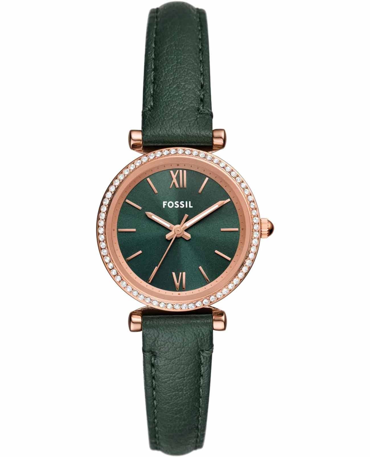 Часы Fossil ES5370 представляют собой стильный аксессуар, который станет отличным дополнением к вашему образу. Эти женские наручные часы, произведенные в США, оснащены надежным кварцевым механизмом. Корпус выполнен из стали с розово-золотистым IP-покрытиемIP-покрытиеМетод ионного напыления. Демонстрирует повышенную устойчивость к истиранию, окислению и химическим веществам. Под воздействием высокого давления и температуры около 1500°C молекулы металла надёжно соединяются с частицами корпуса часов., а безельБезельВнешний ободок, закрепляющий стекло. В спортивных часах так называется поворотное кольцо с делениями на циферблате, выполняет роль таймера – замеряет отрезки времени на шкале. Неподвижный безель – элемент декора. Однонаправленно вращающийся безель на дайверских часах позволяет фиксировать моменты погружения и выныривания на поверхность. украшен кристаллами, что придает часам утонченный и изысканный вид. Зеленый циферблат, изготовленный по технологии Sunray, создает эффект солнечных лучей и привлекает внимание своей глубиной. Метки в виде штрихов и римских цифр VI и XII подчеркивают классический стиль, а рифленая заводная головка добавляет изящества. Стрелки с люминесцентным покрытиемЛюминесцентное покрытиеПозволяет считывать показания времени в темноте. Производители наносят на стрелки, часовые индексы, безель или поверхность циферблата светонакопительный состав, дающий холодное свечение. позволяют легко считывать время даже в условиях низкой освещенности. Часы комплектуются фирменным кожаным ремешком LiteHide с классической застежкой, который обеспечивает комфортное ношение и надежную фиксацию на запястье. Водозащита 50WR позволяет не беспокоиться о случайных брызгах воды. Минеральное стеклоМинеральное стеклоМинеральное стекло представляет собой искусственно выращенный минерал кварца. Такое стекло отличается особой устойчивостью к повреждениям и царапинам. Уступает по некоторым качествам сапфировому стеклу. защищает циферблат от царапин и повреждений. С диаметром корпуса 28 мм и шириной ремешка 12 мм, эти часы идеально подойдут для тех, кто ценит элегантность и качество.